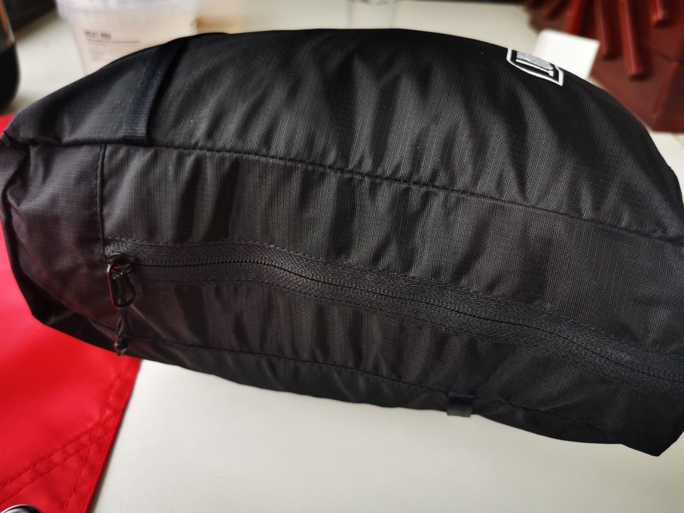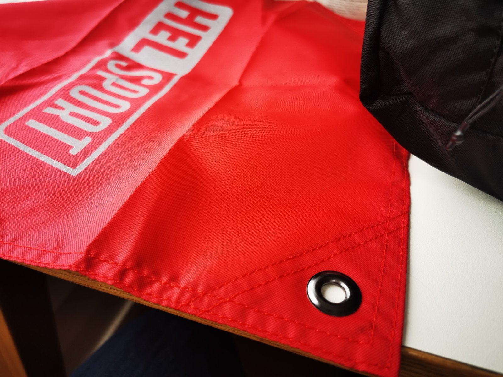 Den hos helsport som byttet ut den vanlige pakkposen med en firkantet glidelås sak kunne ikke ha vært mye på tur... Sliter stort med å få vindsekken i posen og enda værre glidlåsen setter seg fast. Når jeg er kald og grinete i dårlig vær kommer det nok noen gloser.. Den gamle stappeposen var nok bedre. Null poeng til helsport på denne. Vindsekken er heldigvis bra. Det var også med en rød firkant med flotte fester. Hva det er og hva den skal brukes til står det ingenting om. Tore