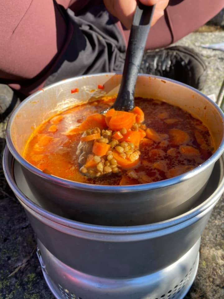 Jeg er litt engasjert i et prosjekt som er et samarbeid mellom Stavanger Turistforening og flyktningetaten i kommunen og på onsdag var vi ute og lærte litt om kart og kompass. Da ble det også laget mat ute på primus / stormkjøkken og den som tok seg av, eller lærte bort matlaging ute, var en dame som heter Hilde Grøtte. Hun har også nylig gitt ut en bok om matlaging på tur som er av et slikt format og er laget slik at du kan ta den med ut, den tåler vind og vær uten å bli ødelagt. Et interessant tilskudd til boksamlingen. https://www.friluftsbua.no/products/bok-eteute