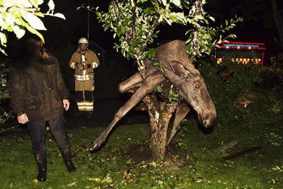 Er du sikker på at det ikke var elgen som hadde fått et par skottske brune for mye da? Slikt kan jo være fristende etter en lang og hard arbeidsuke.