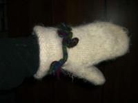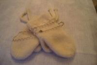 Jeg har et par hvite, tovede, ull strikkevotter som begynner å bli utslitt. De har stort sett levd sitt liv på innsiden av vindvottene mine, og de har faktisk overlevd flere par av disse vindvottene. Jeg tør nesten ikke si det, men de ble kjøpt på husfliden i Kirkenes i 1976. Et utrolig produkt. Nå kunne jeg tenke meg å få tak i et par av samme type eller noe lignende. De var innom vaskemaskinen i går, men når de er tørre så skal jeg legge ut et bilde. Jeg fant et par bilder på nettet som lignet litt. Er det noen som vet om et sted hvor man kan få kjøpt tykke, myke strikkevotter i 100% ull?