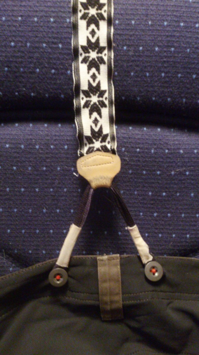 Knappene til slike seler trenger ikke å være så store. Jeg har endt opp med skjorteknapper på en av mine bukser. Pass bare på at knappene ikke kommer rett under hoftebeltet eller bæresystemet på ryggsekken, der hvor det er lite naturlig polstring inn til bein. Det har jeg opplevd og da lå et par av knappene, en på hofta og en bak, og gnagde på hoftebeinet. Dette er ikke særlig behagelig. Etter en tid så blir det som å gå med en stein i skoen. For min del så ble det å sprette av de aktuelle knappene. Lærstroppen som vises på bildet er sydd sammen til en rund form. Spesielt bak, under ryggsekken kan dette lett føre til at den ligger og gnager. Mitt råd er å teste dette ut før du legger ut på langtur.