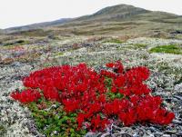 Var en tur i fjellet sist helg og rypebær lyngen var akkurat begynt å bli rød. Denne helgen vil jeg anta at det flere steder lyser rødt. Rejohn: Ja dette er høstfarger. Over tregrensa er vel denne planten det mest fargesprakende høsttegnet som finnes. Ellers var det lite fugl i fjellet. Så noen få ryper, en god del mindre enn forventet, noen heipiplerker og en bekkasin som fløy opp fra samme stedet både fredag og søndag.
