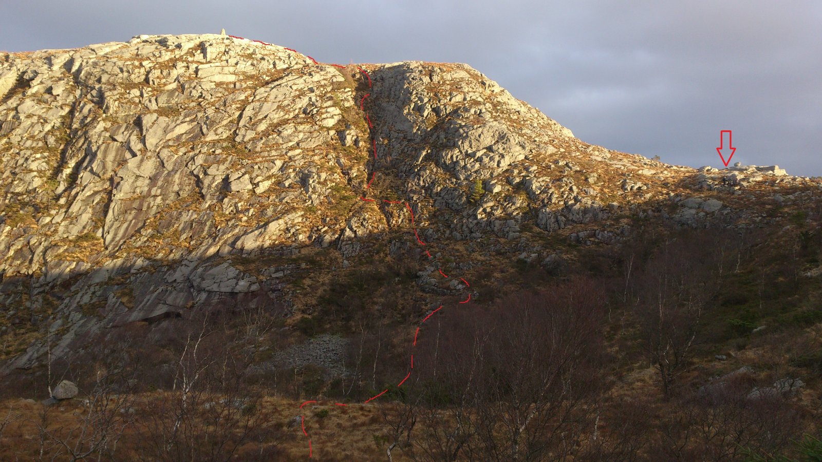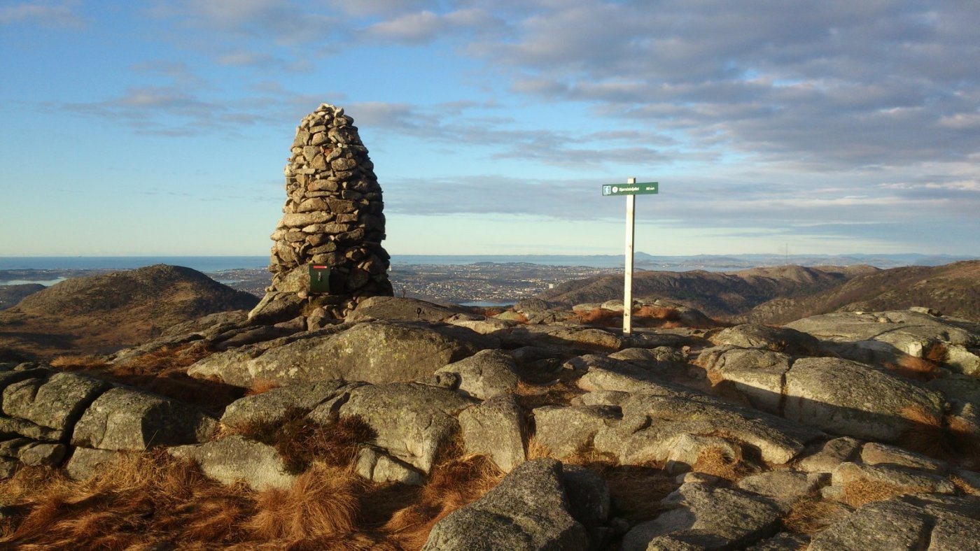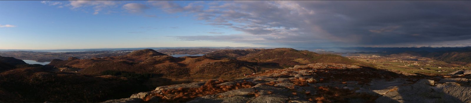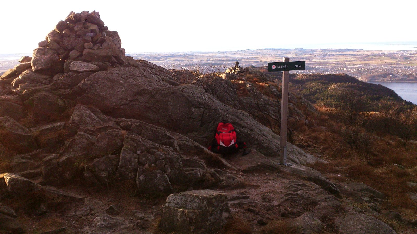 Ja ja, så ble det litt tur like vel. Fjordåret har vert sterkt preget av alt for lite tur og en stadig stigende turabstinens. Både på grunn av at legekontorer og sykehus har vert gjenstand for flere besøk enn omliggende naturområder og på grunn av at været stort sett har vert av en særs dårlig kvalitet de dagene der tid og fysisk form har tillatt at turklær og sko blir hentet fram fra skuffer og skap. Siste sykehusbesøk ser ut til å ha hatt en liten positiv effekt, hvis jeg kjenner godt etter, og i går så var også været av en slik kvalitet at det bare måtte benyttes. Slikt vær er sjelden vare her vest, men i går var det faktisk av svært bra kvalitet. Turen ble ikke så lang, men det ble Gramstad og en tur over Mattirudlå og Bjørndalsfjellet, og siden jeg ikke er så veldig flink til å holde meg på "den smale sti", så ble det noen avstikkere bort fra en etter hvert noe slitt tursti. Bakken opp til Mattirudlå med sine 346m, en stigning på ca. 140 meter, er nok den tøffeste på turen med partier hvor det nesten føles som at man kan støtte seg på nesen. Men turen gir også en fin utsikt østover mot Lutsivannet, og med dagens vær, og selv om det noen steder lå is på vannet, så hadde det sikkert også vert fint med en tur i kanoen. Lutsivassdraget strekker seg innover mot Ims gjennom flere vann og smale pasasjer og gir kanobrukere og andre som flyter, en fantastisk mulighet til f.eks. å bruke 2 -3 dager med telt og sovepose bare noen minutters kjøretur fra Sandnes og Stavanger. Men selv med en kondisjon som ligger godt plassert et sted langt nede i kjelleren så nådde jeg toppen av Mattirudla og fikk nyte utsikten over nord Jæren mens jeg fikk igjen pusten og fikk fullt på med litt fludium. Nordover kan du, på en klar dag, nesten se like til Karmøy og vestover er det bare krumningen på jorda som hindrer at du kan se like til England. Jeg fulgte stien over toppene mot Bjørndalsfjellet. Bakken var delvis frosset så det var ganske lett å gå. Jeg gikk opp til toppen langs den vanlige ruta, men på veien opp så ble jeg stående og lure litt på om det var nødvendig å gå tilbake samme vei eller om det fantes en alternativ rute, og det gjorde det. Bjørndalsfjellet med sine 362m gir en fin utsikt i alle retninger. Ned et bratt skar på sørsiden skulle vel ikke være helt umulig, og selv om en del av steinene var islagte så tok jeg sjansen på en bratt nedstigning. Det ser kanskje ikke så bratt ut på bildet, men noen steder var, på grunn av islagte berg og steiner, kanskje litt i det skumleste laget, men det gikk og vel nede var det ganske behagelig å kjenne på følelsen av å komme litt bort fra stien. Jeg vil tro at høydeforskjellen her er på godt over 100m. Selv om jeg hadde med både primus, kaffekjele og diverse rett i koppen produkter så ble det verken mat eller drikke, og etter nok en avstikker rundt Kuheia før jeg var nede ved bilen så kjente jeg at det begynte å bli rimelig tomt for energi. Det ble over tre timer med trasking i terrenget og klokka nærmet seg tre på ettermiddagen. Ikke rart at en liten enkel frokost var brukt opp for lenge siden. Ok, jeg kjører jo forbi IKEA på veien hjem og der selger de pølser i brød til bare kr. 5,- pr. stykk, nesten billigere en å kjøpe pølser i butikken, så det ble et lite stopp her også. (Jeg spurte ikke hva pølsene var laget av, men det var de sikkert.) "Og den som ikke en fridag kan nytta så, han fortjener da heller ingen fridag å få."