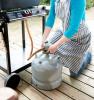 24. Det blå aparatet som du viser på bildet har sansynligvis en standard skrukopling under brenneren. (Har et av samme type som ble kjøpt ca. 1965 og det har en helt standard skrukopling.) Det burde ikke være noe problem å finne en kopling / overgang som passer her, men de standardflaskene som brukes i dag har en hurtigkoblet ventil på toppen og jeg tror ikke du vil finne en brenner som kan festes direkte på disse. Du må nok gå veien om en standardkopling og en slange, men videre er det nok uendelig mange muligheter.