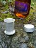 7. Hva med et sammenleggbart drammeglass? Laget av en slags aluminiumslegering og sparer sikkert mye vekt i forhold til de som lages i rustfritt stål og selges i sett på 4 eller 5. Dette ble i sin tid kjøpt på et kjempstort loppemarked et sted i Paris og kostet meg den enorme sum av ca. NOK 30,- En nyttig liten sak, og siden det nesten er umulig å få det til å holde tett så må man ikke somle for lenge med å drikke opp innholdet.