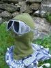 På vanlige sommerturer bruker jeg stort sett en vanlig "Caps". Mest for å få litt sjygge for solen i øynene. Tidligere brukte jeg stort sett bare Østerdalslue. Et hodeplagg uten sidestykke, men de krymper en del når de blir våte og så er de litt dyre å kjøpe nye. De varer ikke så lenge når man ferdes ute i all slags vær. Blir det kaldere så bruker jeg en lue av srikket ull med noe mykt stoff på innsiden. Kanskje det er fleece eller thinsulate eller noe slikt. Bilde L1. Dette er favorittlua mi. Jeg har også en lue fra Ullvang, men den synes jeg har for dårlig passform, eller kanskje det bare er meg som er litt for "tjukk i hue". Den har også lett for å bli for varm. Bilde L2. Den grønne hetta på bilde L3 er også suveren. Laget i tynn ull. Grønn på utsiden og hvit inni. Den varmer hodet og tetter godt rundt halsen og skulle det bli for varmt på toppen så er det bare å trekke den over hodet og la den ligge som en krave rundt halsen. Hetta på bildet L4 blir stort sett bare brukt vinterstid, i snøen. Ellers blir den for varm. På hendene skal det bli ganske kalt før jeg trekker noe på, men tynne ullhansker med avkappede fingre er veldig bra. Bilde H1. Holder varmen samtidig som du har fingrene fri til å betjene fotoapparat, fiskeutstyr etc. Blir det kaldere så har jeg disse hanskene som er strikket av ull eller kanskje det er noe syntetiske greier med "Thinculate" på innsiden. Bilde H2. Og til vinterbruk, i snøen, fungerer disse bra. En uforet vindvott med en god ullvott inni. Bilde H3. Disse ullvottene ble kjøpt på husfliden i Kirkenes for mange herrens år siden og siden de kun brukes inne i vindotter så har de overlevd mange par vindvottepar. Det er mye bra å få kjøpt av både hodeplagg og votter, og de fleste har vel sine egne favoritter.