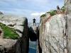 Et annet alternativ kan være å reise fra Stavanger til preikestolen første dag med retur til Stavanger eller Forsand. Et tips er å reise inn til Preikestolen fjellstue dagen før og overnatte her. Hvis retur til Stavanger: Overnatt og reis fra Lauvvik neste morgen. Båt kl. 06.05 Hvis dere bruker telt så er det sikkert mulig å finne overnatting på Lauvvik. Hvis retur til forsand. Smått med overnatting uten telt. http://www.forsand.kommune.no/artikkel.aspx?AId=57&back=1&MId1=7&MId2=47&MId3=86 Forsand er første stopp for båten etter Lauvvik. (Fra Forsand må du med båt for å komme tilbake til Stavanger.) Ta båten til Flørli, gå opp trappene og returner. Det anbefales å ta stien om Flørlistølen i stedet for trappene når dere går ned. Overnatting på STF sin selvbetjente hytte eller forsøk å nå båten som går fra Lauvvik tirsdag, torsdag og søndag kl. 14.20, eller fredag og søndag kl. 16.45. Rutetider båt: Dra inn til Lysebotn. Overnatting på Lysebotn Camping anbefales. http://lysebotn-touristcamp.com/ Her kan dere møte basehoppere fra hele verden, nyte en pils på terrassen og se om noen klarer å lande på trampolinen som står på plenen like utenfor terrassen. Er dere "heldige" så får dere kanskje oppleve smellet fra Smellveggen. Dette oppstår når kraftig nordavind blåser vann fra fossen inn i fjellveggen, men sterk nordavind står kanskje ikke øverst på ønskelisten. Få skyss opp til Øygardsstølen. Avtal henting ved retur. Gå til Kjerrag, stå på Bolten, (obligatorisk) ta bilder og returner til Øygardsstølen. Båt fra Lysebotn tilbake til bilen. Det går også å ta bilen fra Stavanger til Lysebotn etter Preikestolen. Enten med båten eller ved å kjøre via Hunnedalen og Sirdalen (ca. 150 km, 2.5 - 3 t.). Da kan dere ta Kjerrag først og Flørli siste dag med retur til Lysebotn, eller Flørli først med retur over fjellet fra toppen av trappene til selvbetjent hytte på Langevatn og videre langs merket løype til Kjerrag og ut til Øygardsstølen. Eller hvis dere allerede har vert på Kjerrag så kan dere gå fra hytta på Langevatn, ta stien som går langs Langevatn til demningen ved Tjodanvatn. Så videre på anleggsvei eller over fjellet (Ikke merket) til Øygardsstølen. Som dere ser så er det flere muligheter alt etter hvor mye tid dere har og hvor mye dere vill gå.