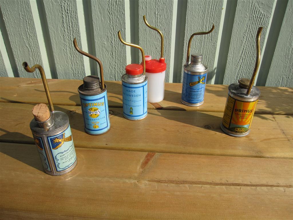 Jeg husker fra militæret at vi hadde en liten plastflaske med en lang, litt bøyd metallrør som bare ga en viss mengde rødsprit når vi helte rødsprit på primusen. Noe i likhet med sånne sukkerdispensor. Jeg fant disse på nettet, men her er røret av plast og de er visst beregnet på Petromax lamper. Her fant jeg den rette typen. Det var den hvite med rød kork bakerst i samlingen som jeg husker fra militæret. Men det går jo å lage sin egen.