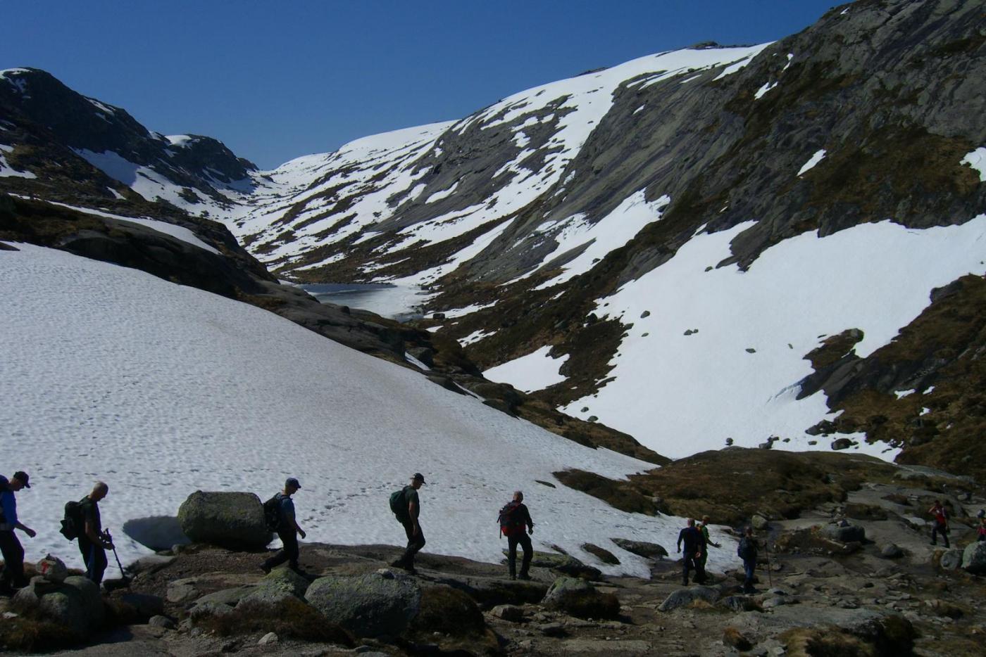 Now it finally happend. This year's first trip to Kjerag with 8 British guests. We rented a 9 seat car and early Friday morning we were on our way. A small piece of convoy driving gave us a delay of about half an hour, but about 11 o'clock we were ready to start from the carpark. It was a wonderful trip with sun from a blue sky and almost no windand. I, who have been here several times, also had a vonderful day with good company. Always nice to take guests to see our beautiful scenery when they can return home with a nice experience. Thanks for a nice day