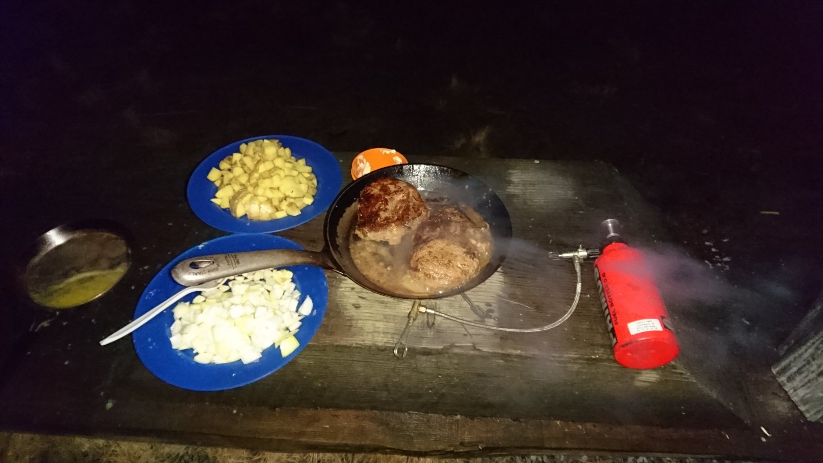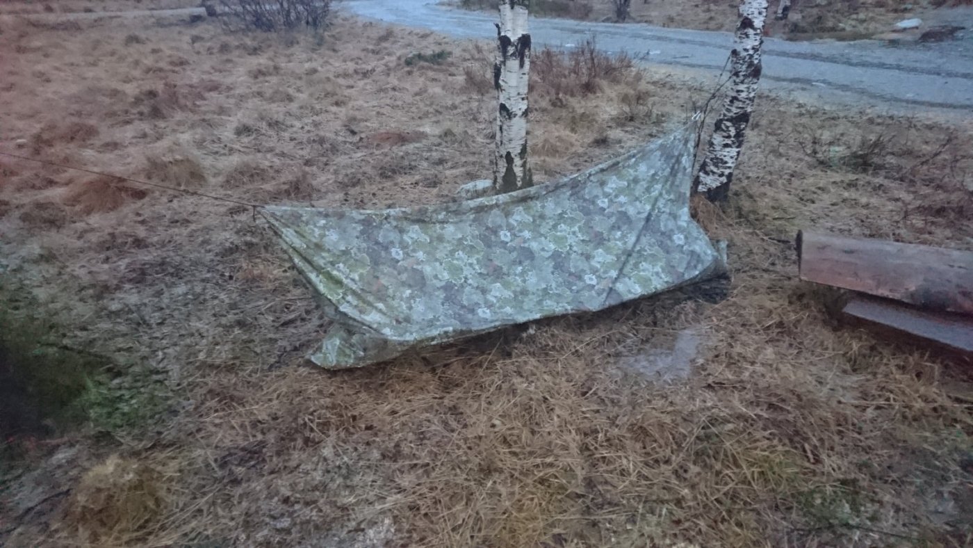 Det er alltid kjekt å gi barna det de ønsker seg til fødselsdagen sin, og i år ønsket minstemann, som ble 20 og ikke lenger er minst, seg en Jerven duk.Ok, en Jerven duk ble kjøpt inn og da ble gutten selvfølgelig glad, men, og det er alltid et men. Få dager etter at feiringen var unnagjort så kom beskjeden om at denne helgen hadde han ingen andre ting på timeplanen så da regnet han med at far ble med ut for å prøve den nye jerven duken. Far som har lang fartstid som friluftsmann stilte selvfølgelig opp, selv om gutten for lengst har begynt å bære langt større sekk og går de bratteste bakkene mye fortere enn meg. Værmeldingen for lørdag og søndag var elendig så turen ble ikke lang. Brekko i Gjesdal kommune er en fin plass for småturer og der er det også satt opp noen solide gapa huker i tilfelle været skulle bli dårlig, og det ble det. Lørdagskvelden var fin og middagen som bestod av Entrecote og poteter stekt med løk og hvitløk pluss en god porsjon peppersaus, og med en god og kald bayerøl fra Aass bryggeri. Jeg valgte å ligge i den ene gapa huken, men Jerven duken ble hengt opp mellom to tre og ble en utmerket bolig for natten. Ca. midt på natten forsvant fullmånen og det kom både sludd og mye vind. Jeg ble nødt til å krype helt inn til veggen innerst i gapa huken for å unngå å bli våt, men han som kamperte i Jerven duken så ut til å tåle været svært bra. Søndag morgen var bakken hvit, men etter at vi hadde fått i oss noe egg og litt bacon så regnet det så kraftig at det eneste fornuftige var å pakke sammen og vende nesen hjemover. Vel hjemme konstaterte jeg at absolutt alt jeg hadde på meg var gjennomvått, nok et bevis på at Gore-tex jakken fra Arc'teryx til over 6000 kroner ikke er noe annet enn en dyr regnjakke som verken puster eller holder vannet ute. (Kanskje jeg skulle forsøke å vrenge den neste gang.) "Men alle var enige om at det hadde vert en fin tur".