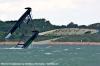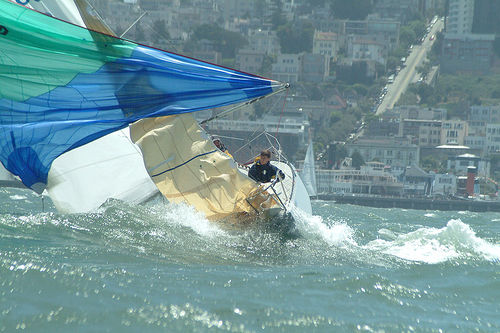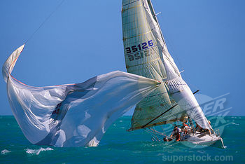 Ja selvfølgelig kan man rigge opp tauer og blokker, men får du ikke problemer med "brasen" da hvis vinden dreier eller at kursen endres, og hvordan går det med stabiliteten på spinnakeren? Jeg har opplevd å kjøre spinnaker i sterk vind og platt lens, og det endte med at spinnakeren begynte å pendle fra side til side, og før vi fikk sikret / strammet spinnakerbom og bras sjikkelig så var "kineseren" (broach) et faktum. Båten skar ut og la seg på tvers av vinden, krenget ned mot babord, storseil og bom kom fra styrbord til babord som om den var skutt ut fra en kanon, vannet stod helt opp til masten og cockpiten ble fyllt med vann på sekundet. Brasen ble heldigvis sluppet løs så vi berget seil og bom, men det ble ganske vått for de som satt i le. Men dette har jo ikke noe med dette temaet å gjøre, men fri luft, det var det sandelig nok av den gangen, det skal jeg love deg. Fant noen bilder på nettet i tilfelle noen skulle ha interesse av hva det handler om. Fant også noen friske 49er snutter for de som liker vind, vann og stor fart. -