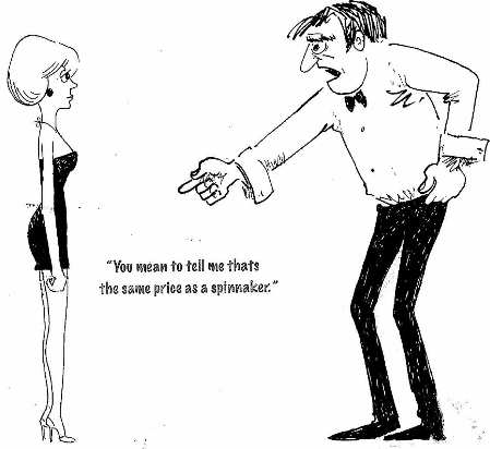 Her er noen forskjellige varianter, sjønt disse vel strengt tatt blir kaldt genaker, men de gjør samme nytten. (Disse båtene har fast bauspyd som skyves rett frem, mens til spinnaker brukes en løs spinnakerbom som festes til masten.) http://www.j120.org/j120oldfront.htm Spinnaker: http://dan.pfeiffer.net/p26/spin.htm Et lite tips ved bruk av spinnakertape til rep av klær og telt. Klipp til en passe stor bit. Klipp den rund i hjørnene / endene. (Unngå skarpe hjørner, de bare løsner.) Hvis mulig, legg først en lapp på innsiden. Legg så en lapp på utsiden. I områder med strekk eller stor belastning kan det være lurt å legge en lapp først og så en til som er noe større over den første. -