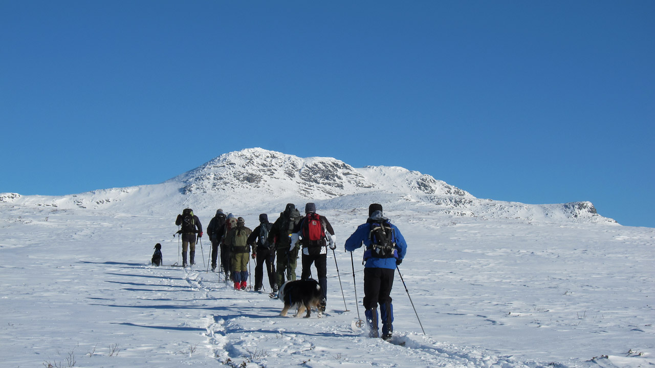 Det var ti fornøyde skiløpere, og 2 slitne hunder.. , som ankom vinterparkeringen etter en fantastisk tur. Planlegging av neste tur var allerede igang...