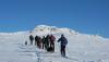 Valdres tur og fjellsportslag (DNT Valdres.. hadde Skaget på turprogrammet i Mars. Turen skulle gå etter åpen-dato prinsippet, så yr.no og pent.no ble regelmessig besøkt i forkant. Yr meldte sol fra skyfri himmel Lørdag 19. Mars, og da ti turglade fjellfanter møtte opp på vinterparkeringen et par kilometer forbi Yddin fjellstue kl 9 på morgenen, var det et flott skue opp mot Skaget og ikke en sky på himmelen..