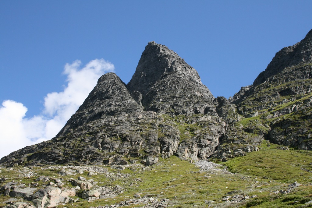 Da jeg kom opp på bandet mellom Storesmeden og Trolltind slo jeg fra meg idéen om å gå opp på Trolltinden, det var ganske glatt på steinene som lå i skyggen. Gikk istedet en tur på Steet (1997m) og etterpå opp på Storesmeden, som ikke var så vanskelig som det så ut nedenfra. Bandet mot Veslesmeden fristet imidlertid ikke, der er det nok best å gå tidligere på sommeren