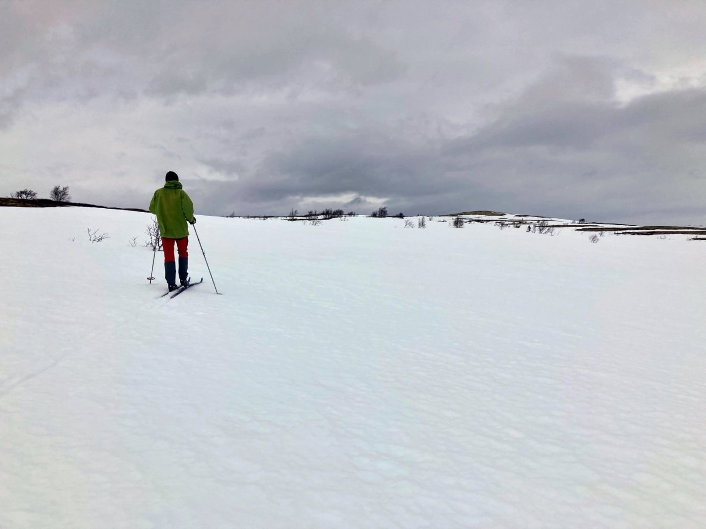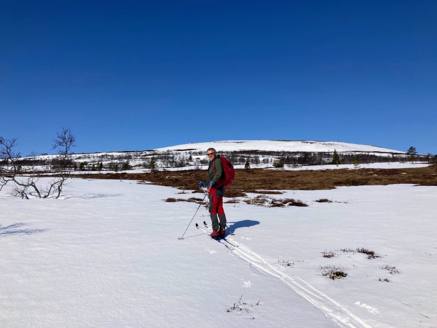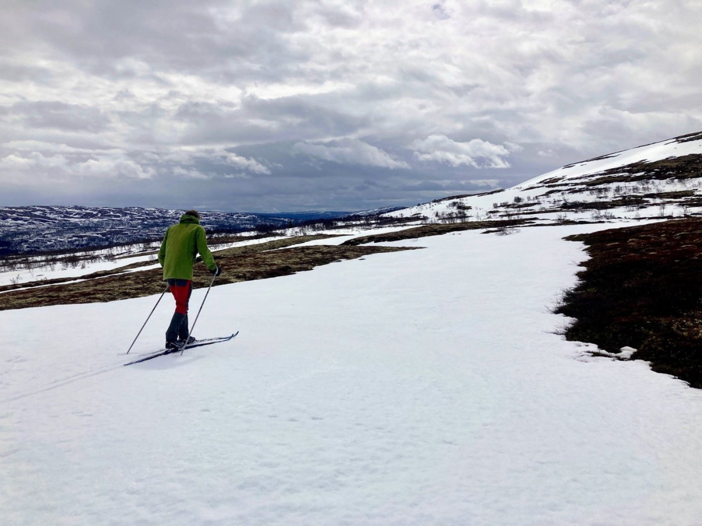 Vårtegn i Holtålsfjella, men det går seint med snøsmeltinga, så fjellskoa må vel vente en stund enda 😥 Rundt en meter snø under tregrensa, delvis helt avsmeltet over, men også mange «renner» med mye snø. Overraskende ok føre på lørdag.