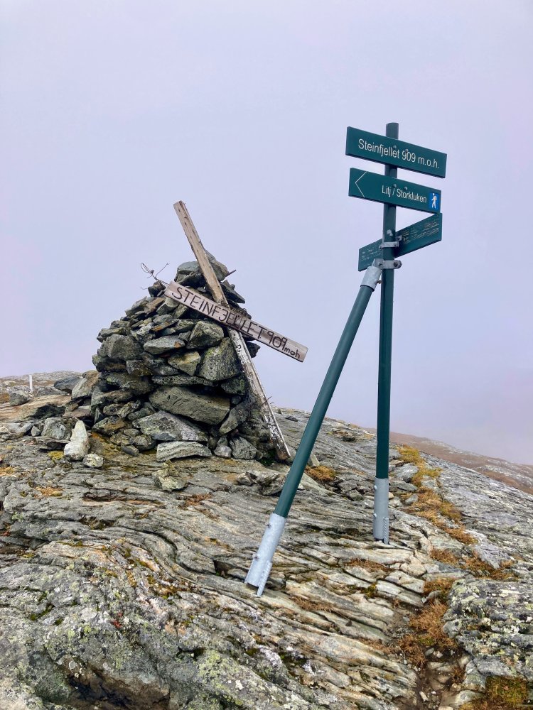 Topptur til Steinfjellet (909 moh) fra Teveltunet Fjellstue i Meråker i går. Utsikten forsvant dessverre i tåka, men fin utsikt på vei opp og ned. Gikk turen som en rundtur for å få en litt slakere (med da også lengre) nedstigning. Mye søkkvåt og gjørmete myr på returen.