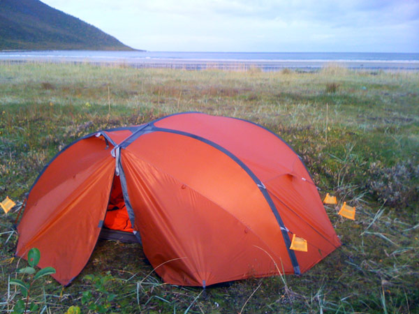Tenkte jeg skulle vise et par bilder av Exped Venus II Extreme MED stangfeste (fikk byttet det hos Oslo Sportslager). Bildene er tatt på Senja for ca et par uker siden. På Sildevika var det ruskevær med til tider stiv kuling om natten, men teltet holdt stand. Skulle gjerne ha blåst sterkere, så hadde jeg fått testet det ytterligere, men kanskje noen her har brukt teltet under ekstreme forhold?