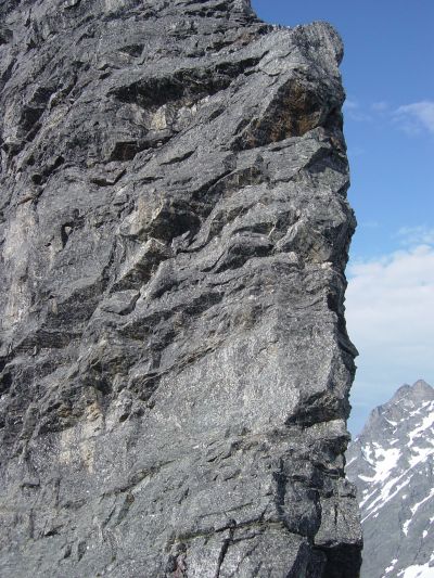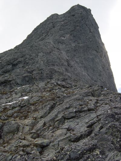 Forresten kan jeg ikke dy meg for å legge ved et artig og fint bilde fra Store Austanbottntind. Dette er eggen noen få metre før en kommer opp til det utsatte toppunktet med varden. -