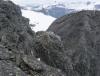 Ryggen fra St Memurutind ned til Memuruskardet fikk jeg ikke skikkelig inntrykk av, siden jeg fulgte noen snøfelter på jakt etter vann, i en ganske bratt linje rett ned mot breen, og siden traverserte i løs ur - men greit - bort til Memuruskardet. -