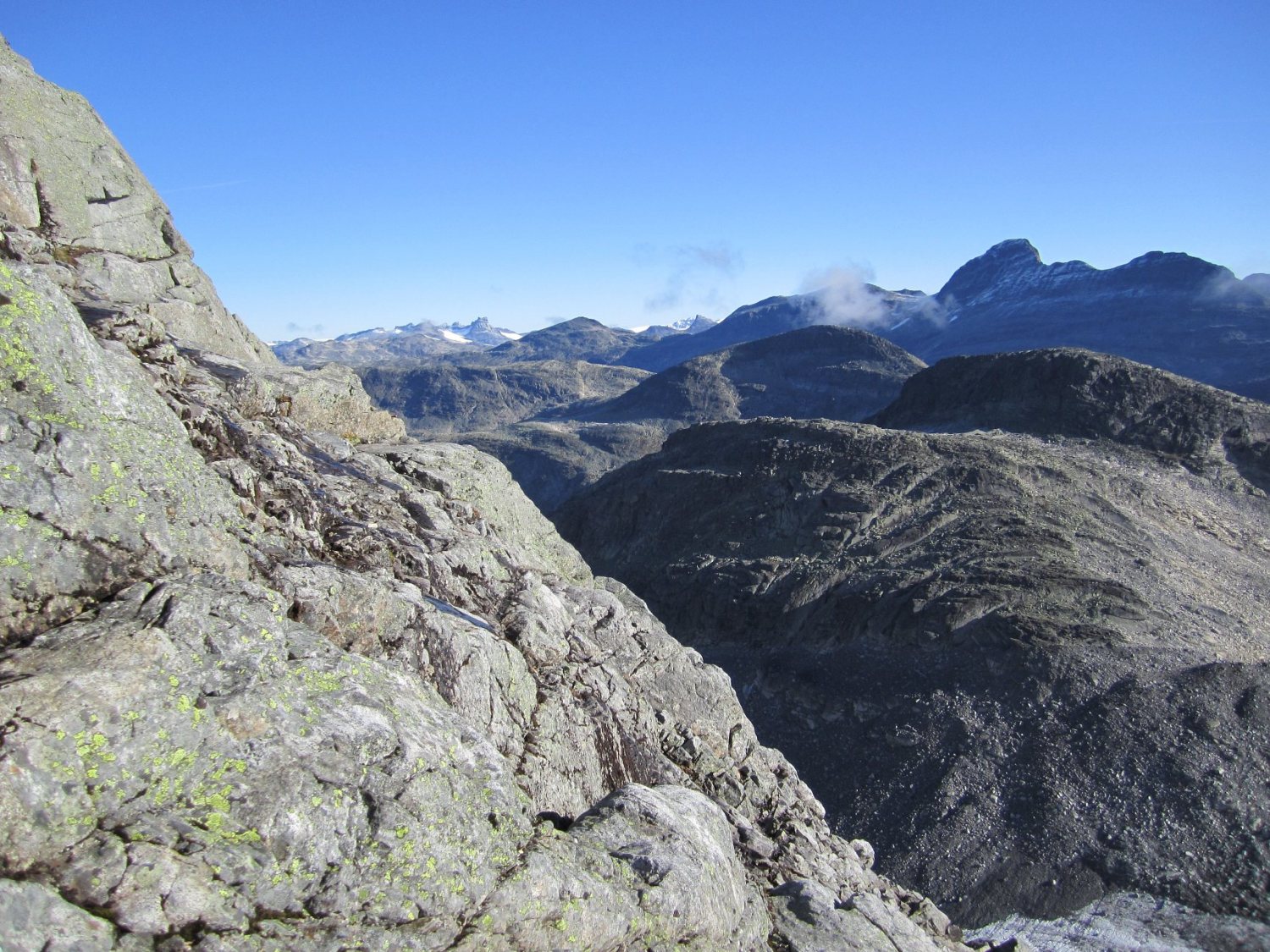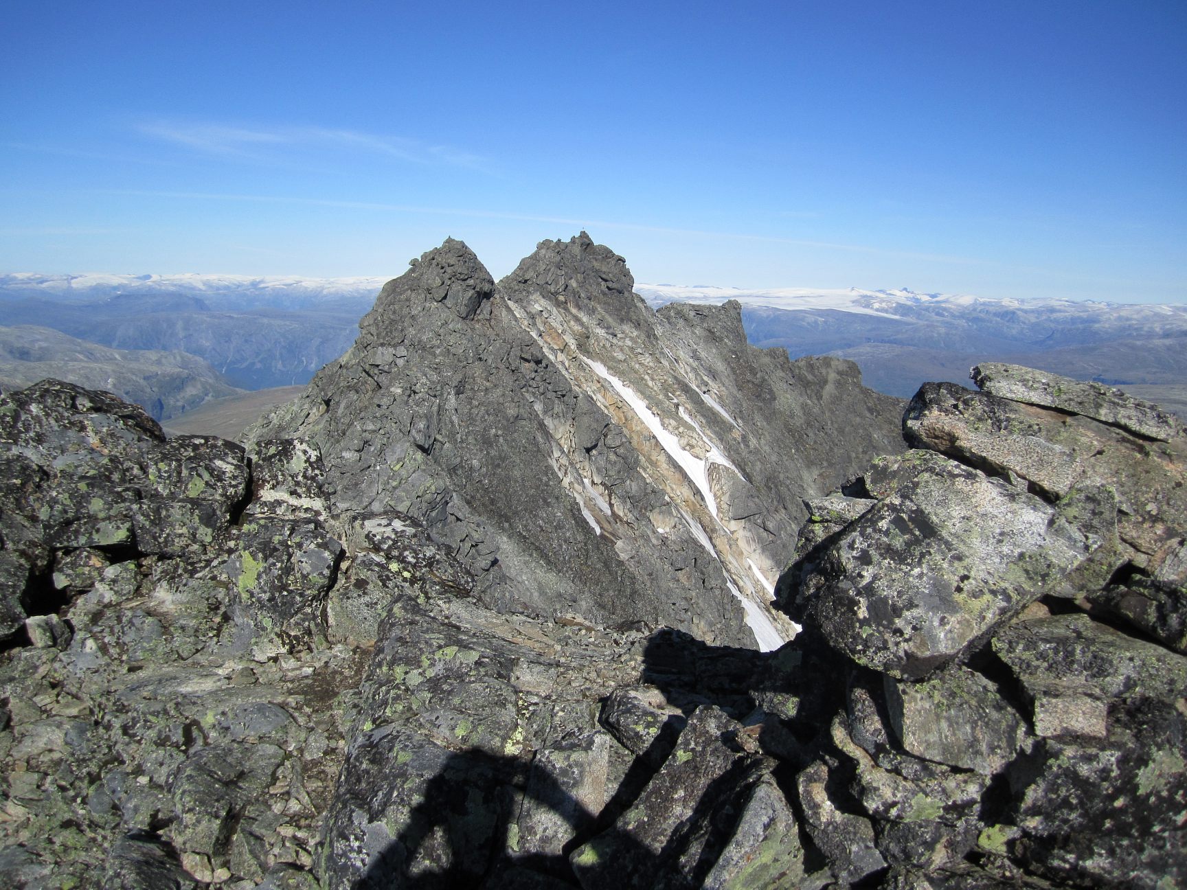 Trenger jo ikke alltid å skrive så mye, så her er masse bilder fra klyveturen min alene på Dyrhaugryggen søn 15.aug - en nydelig dag forresten. Ruta: Ringsdalen - overnatting under åpen himmel på ca 1450 m på Dyrhaugryggen - Store Dyrhaugtind - Søre Dyrhaugtind - Nordre Midtmaradalstind - retur samme vei. Tid: Ca 10 t + 1 time kvelden før. Turen innebar ca 5 effektive timer med masse deilig klyving på tørt fjell, noen punkter grad 2.
