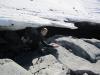 Fredag 21.mai Gikk fra Krossbu og nordvestover opp Storflyi. Her måtte jeg skifte til shorts, og passet på å smøre beina godt med solkrem! Etter to timer, og nesten rett øst for Loftet svingte jeg opp og øst, og inn i den lille dalen ved Brangsbrean. Her var det gått noen store skred i nordsida til Veslefjelltinden. Jeg ville opp i skaret (1967m) mellom Veslefjelltinden og Loftet. Det så bratt ut, og etter hvert vågde jeg ikke lenger på ski (det var hard skare), men spente disse på sekken, og tok på stegjern. Det føltes langt tryggere, men det ble faktisk en del gjennomslag og pes, så jeg skiftet taktikk, og fulgte den avsmeltede løse steinura et lite stykke til brattheten avtok, og jeg igjen kunne ta skiene fatt igjen. Oppe i skaret gikk jeg greit opp (noen korte bare partier med stein kunne ikke unngås) med ski på beina til Loftet. 4 timer hit. Så ned i skaret igjen, der jeg tok beina fatt opp den omtrent snøfrie eggen til Veslefjelltinden – dette ble turens høydepunkt for min del: Fin småklying på til dels luftig egg, på varmt og deilig sommerfjell! Fra Veslefjelltinden, som jeg hadde vært på om natta i mai 1998, ned og opp på Hurrbreatinden. Så langt utpå dagen begynte snøen å bli veldig løs selv i 2000 meters høyde, så jeg plukket kun med meg Veslebreatinden også, før jeg startet på returen til Krossbu. Av erfaring visste jeg dette kunne ta tid - selv om det bare var nedover - med så råtten snø – og jeg fikk rett. Plutselige gjennomslag øker sannsynligheten for fall, stavknekk og verre skader, så jeg tok det med ro hele veien ned, og opplevde ingen problemer. Det var tydelige spor mange steder etter ”slush”-skred, særlig rundt noen bekkefar, så jeg holdt avstand til særlige våte områder. Slengt med noen få bilder fra turen: