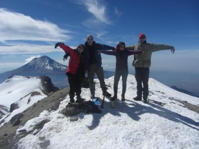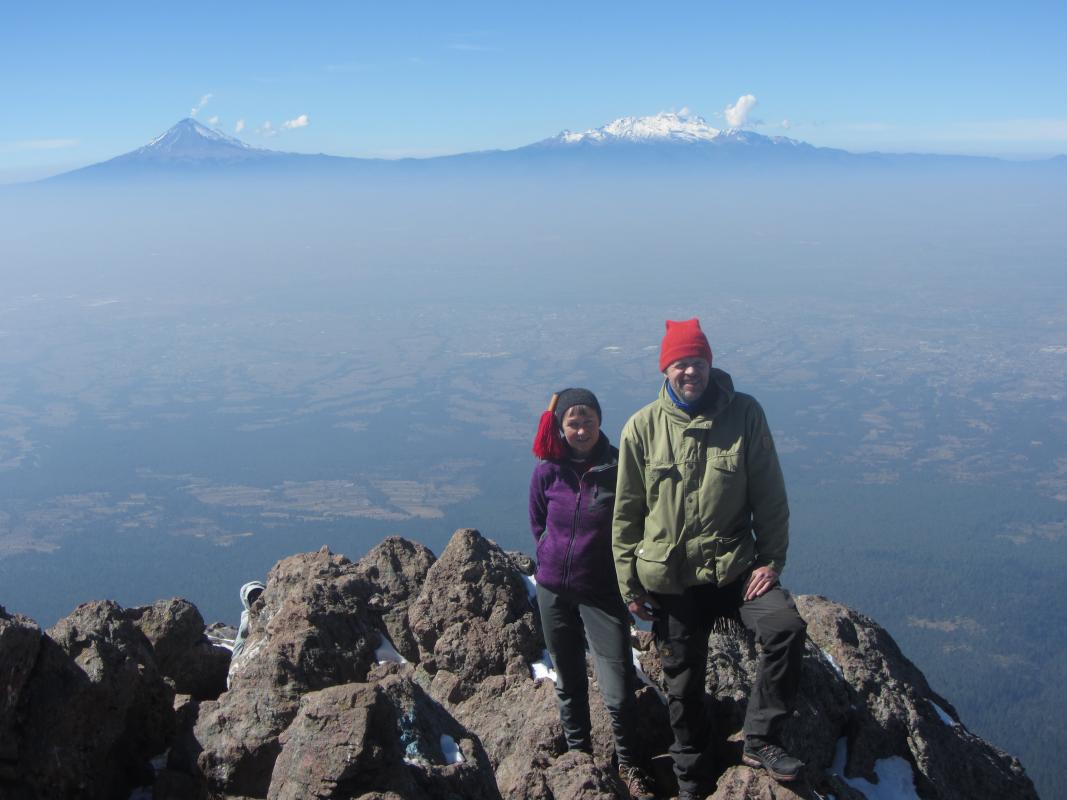 Det var på tide å komme seg vekk fra norsk vintermørke og kulde, og turen gikk derfor til Mexico. Siden Mexico ligger på den nordlige halvkule, er det også her vinter, men været er solrikt om vinteren og er beste tiden for toppturer. 4 nordmenn i sin beste alder, snittalder på bortimot 60, tok turen og vi besøkte vulkanene Malinche(4468 m), Iztaccihuatl(5230 m) og Pico Orizaba(5636 m). Popocatepetl, som er Mexicos nesthøyeste fjell, hadde også vært artig å besøke, men den er svært aktiv for tiden og det er forbudt og farlig å gå opp der, men noen lokale gjør det likevel. Vi koste oss med å se at Popo slapp ut svære røyskyer med ujevne mellomrom. Toppene ble feiret med tequila, kransekake(for anledningen omdøpt til vulkankake) og sydpolkjeks. Pico Orizaba er Nord-Amerikas høyeste vulkan og ble for mitt vedkommende nummer 5 av de vulkanske seven summits. Nå gjenstår kun de 2 laveste og mest utilgjengelige, som nok ikke vil bli besøkt. I tillegg til fjellturene ble det noen visitter til diverse andre krater, som dukket opp som hull i tilnærmet flatt landskap. Plutselig var vi på en kraterkant og kunne kikke langt ned i et hull, med eller uten vann i bunnen. Turen var bestilt gjennom Eco expeditions som igjen benyttet Orizaba Mountain Guides i Mexico. Greit opplegg, der vi ble hentet på flyplassen og kjørt alle steder hvor det skulle kjøres. Noen vil kanskje være redde for å reise til Mexico, men landet virket egentlig ganske trygt å ferdes i. Vi opplevde ikke noe som kunne betraktes som skummelt. I Mexico city var det veldig tett med væpnede politifolk, ellers nesten som hjemme.