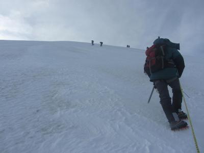 Bakgrunn:Jeg har i mange år samlet nasjonstopper verden rundt, og i september 2015 kom den nest siste toppen i Europa, Dufourspitze i Sveits, på plass. Da var det bare Island igjen. I juni 2016 inviterte jeg til avslutning av Europa-prosjektet på Island. Aud og Knut ville være med og tur ble bestilt. Like før avreise kom beskjed om at fjellet var utilgjengelig på grunn av bresprekker oppunder toppen og ville forbli utilgjengelig ut sesongen. En stakkar hadde 30. mai karet seg opp til 2003 meter over havet, bare ca 100 meter fra toppen, men der var det stopp. Flybillettene ble kastet og vi ble hjemme. Ny tur ble berammet 14. mai i år, med samme besetning. Like før avreise var det meldt orkan og store nedbørsmengder. Etter samråd med turfølget ble nok et sett flybilletter kastet og vi lå på været for bedre værmelding. Jammen godt at jeg ikke dro med meg en haug med folk på disse avbestilte turene. Det gikk ikke mange dagene, og allerede 18. mai ble ny tur bestilt, med god værmelding 19. mai og enda bedre melding 20. mai. Tredje forsøk: Vi valgte å være turister 19. mai og satset alt på at 20. mai skulle bli en knalldag. Dette skulle vise seg å være en god strategi. Vi startet fra parkeringen på Sandfell klokken 05:15, etter at vi så vidt hadde funnet parkeringsplass til den innleide koreaneren. Den første halvtimen oppetter gikk i havtåke, deretter var det bare strålende sol og skyfri himmel resten av denne lange dagen. Ikke en sky på himmelen, fin temperatur og 2-4 sekundmeter vind. Slikt er ikke vanlig i dette hjørnet av verden. I ca 400 meters høyde burde vi fylt flaskene med vann, for lenger oppe var det ikke vann så tidlig om morgenen. Vi klarte oss likevel godt, ettersom mye rart drikke var med. Det var et par litt tunge partier opp til 700 meter, der vi traff sneen. Herfra var det lettgått, hard skare hele veien opp til en kul på 1820 meter. Noen tendenser til bresprekker ble observert på ca 1650 meter, men vi følte oss trygge uten taubruk på den faste snøen etter uværet som hadde fylt på med hard, sammenblåst snø. Det er langt opp til kulen på 1820 meter, men med jevnt og rolig driv oppover var det god fremdrift. Frem til foten av Hnukuren gikk det lett, og vi bandt oss inn i tau og tok på stegjern før vi ruslet opp kneika mellom bresprekkene til toppen. Undertegnede klarte ikke å holde tårene tilbake det siste stykket mot toppen. For en dag – for et vær og føre – og for et sterkt turfølge med en snittalder på over 70 år. Vi brukte godt under 6 timer til toppen, og var godt fornøyde med det. Det ble et langt opphold med mange seremonier på toppen. Etter de obligatoriske toppklemmene ble det 3x3 hipp hurra, etterfulgt av en fantastisk tale fra Aud, der jeg ble klassifisert som en rødlistet art. Toppdramansvarlig stilte med både Svartadaudir og Everest-dram anno 2005, før det ble kondorering, solodrikking og kransekake med norske flagg og smellbonboner med dårlige vitser og ubrukelige hatter. Vi hadde toppen for oss selv, litt synd for det er jo gøy å sjokkere andre litt. Fra toppen gikk vi en litt alternativ rute ned for å unngå trafikkproblemer. Masse store sprekker som er i ferd med å åpne seg. Det kan fort skje at fjellet også i år stenges av naturen tidlig i sesongen om disse sprekkene åpner seg skikkelig. Gps-spor så langt batteriet rakk Vi er kommet over havtåken Hard og fin sne å gå på En pust i bakken, ca 1400 meter Oppe på 1820meterskulen Mange små maur foran oss mot toppen På tide med stegjern og tau opp sprekkepartiet Tilbakeblikk mot 1820-toppen. Vi gikk i en stor bue utenom sprekkepartiet Kondorer på toppen Sveinstindur på andre siden av den store sletta Snæbreid er ikke akkurat noen høydare, men over 2000 meter Ni mil til andre siden av Vatnajøkull Utsikt fra toppen mot kysten Solo på toppen Store bresprekker i ferd med å åpne seg nær toppen En artig liten kloss på siden av toppen Forblåste isformasjoner Flere topper:Nede ved sekkene insisterte Knut på at vi skulle utvide turen og ta med oss de 2 andre 2k-toppene i området, Snæbreid og Sveinstindur. Undertegnede kunne ikke protestere, ettersom jeg hadde sagt at jeg var med på alt etter at toppen var i boks. Aud lot seg også overtale, og vi ruslet i retning Snæbreid, med utsikt til Hnukuren fra nye vinkler. Litt tungt opp mot den flate toppen, siden det var et le-område med en del nysne. Videre mot Sveinstindur fulgte vi en rygg som var lett å gå. Toppeggen av Svenstindur var stegjern-føre. Knut koser seg med en kola etter toppen. Klar for Snæbreid og Sveinstindur Hvannadalshnukur fra nye vinkler Hvannadalshnukur fra nye vinkler Det ser ut som det er mulig med en alternativ nedtur til høyre i bildet. Sparer tid om man skal gå innom alle 3 2000meterne her Litt tungt opp til Snæbreid Lange vidder her Vi nærmer oss Sveinstindur En lykkelig Knut på sin 3. 2000meter for dagen Utsikt mot Jøkulsarlin, en 20 km2 innsjø med isfjell fra breen Returen: Det gikk raskt ned fra Sveinstindur, og vi satte kursen tvers over den digre sletta mot 1820-toppen. En svær gjeng møtte oss midt på sletta med brede ski, innbundet i tau. Det ble en lang vandring, vi begynte å bli slitne. Fra 1820-kulen gikk det greit et stykke nedover, lenger nede tråkket vi litt mere gjennom. Vi gikk forsiktig i de siste bratte partiene på barmark. Ganske slitne var vi, det er da man faller og slår seg på dustete steder. Aud vant som ventet sluttspurten ned til koreaneren, men vi kara var ikke langt etter. Vi klokket oss i mål på 14,5 timer, hvorav 2 timer pause og seremonier. Vi var ikke helt utmattet etter turen og feiret toppen med en bedre festmiddag på hotellet. Hvit duk, undertegnede i Addis Abeba finskjorte og Aud alias Teskjekjerringa i nye selskapssko. Lang og seig vandring over sletta fra Sveinstindur mot 1820-kulen Litt bløtt nedover i lia Siste etappe på barmark ned til koreaneren Tusen takk for en uforglemmelig dag med to av norges