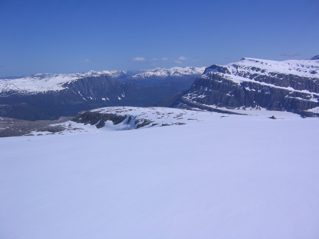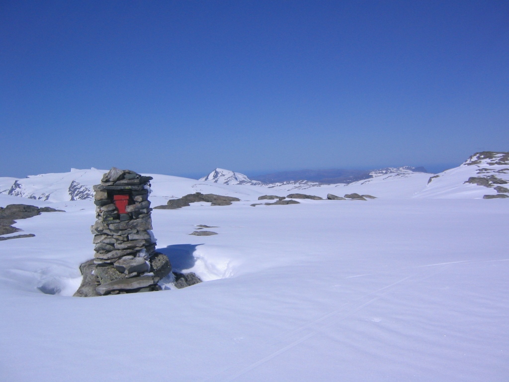 Dette området er beskrevet under tråden frem fra glemselen her på dette forum, så inspirert av dette, samt ønsket om å levere en turrapport fra den siste kommunetoppen i Sør-Norge som enda ikke var beskrevet på www.wwv.no ga meg et ekstra spark til å få denne turen begått. Turmålet var Gunvordalsbreen 1604 moh, kommunetopp i Leikanger kommune. Kartstudier og andre studier viste meg at det er flere ruter opp, både fra Sogndalsdalen og fra Fjærlandsfjorden, men jeg valgte den lange ruten sydfra som ikke krever båttransport eller klyving i bratt terreng midt under snesmeltingen. Føret på tur i denne høyden var verken eller, men været var såpass strålende, så jeg kom meg av gårde på tur til fots, det er jo sommer! En kjøretur opp Grindsdalen til litt ovenfor Myklebru var en prøvelse både for sjåfør og bil. Det hadde nok vært best med en firehjulstrekker med høy bakkeklaring, men jeg kom da opp med tohjulstrukne Blåmann. Siden jeg ikke visste noe om forholdene på veien, var jeg innstilt på å gå nesten fra fjorden, så det var en positiv overraskelse å komme så langt opp gjennom skogen. Videre var det sti opp til Stavsete, der jeg la ut broen over elven for sesongen. Jeg var tydeligvis førstemann oppover her til fots i år. Turen videre fra Stavsete gikk på en liten sti som var delvis dekket av sne. Jeg gikk opp ryggen til Skarholten, en fin rygg og en fin topp, derfra noe mer småkupert bortover ryggen til toppen av Gunvordalsbreen som er et fast punkt med varde og trig. punkt. Jeg kunne med fordel ha tatt med ski på denne turen, siden skiføret startet rett ovenfor Stavsete. Til fots fant jeg en del tørre og fine ryggpartier å gå på, så det var ingen katastrofe å gå fottur her oppe i begynnelsen av juni. Snøfonnene som måtte forseres var stort sett faste og fine, så jeg fikk ikke bruk for trugene jeg hadde med i sekken om det skulle bli helt pillråttent. Det var en flott dag å være på tur her i vest, og etter en liten pause da jeg kom ned igjen, ble det kjøretur til Gaular og en ettermiddagstur på Geitebotsfjellet. Sovnet fort den kvelden