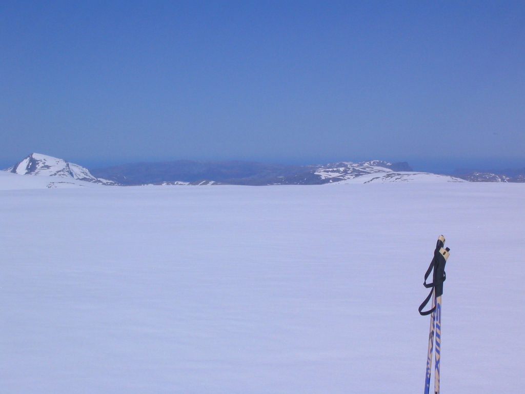 Da var kanskje ikke rutevalget mitt så galt likevel. 3,5 timer fra bilen til topps via Skarholten/Voggebreen. En uke eller 2 tidligere med ski hadde nok gått betydelig raskere.