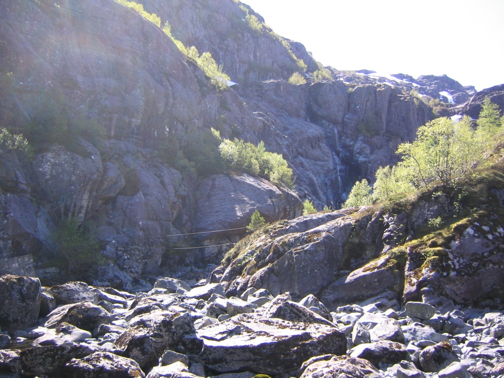 Siste helgen i mai var jeg en tur vestpå og gikk tur både lørdag og søndag. Begge turer gikk til topper i bykommuner, men opplegget var ellers ganske ulikt. Tur 1: Ålfotbreen fra Åskora Dagens prosjekt var å bestige Flora kommunes høyeste fjell. Selv om dette kan kalles en bytur startet det hele ganske landlig og for øvrig var det mest ødemark uten et menneske å se. Ved kraftverket på Åskåra står det et skilt med merke Ålfotbreen 1379 moh. Her er vi ved fjorden, så litt stigning skal det være. Fjellskiene ble satt på sekken og oppover bar det på en fin sti der svabergene var tilrettelagt slik at de også kan forseres i fuktig vær, noe som denne delen av landet har nok av. Noe kronglete å gå med ski på sekken opp gjennom bjerkeskogen, men jeg angret ikke etter hvert som jeg kom lengre opp. På kartet går stien tvers gjennom nedre Åskåravannet, noe jeg stusset litt over og var spent på hvordan det så ut her. Jo da – her hadde det nok vært et vann tidligere, men det var nå helt borte, bare litt mudder igjen på det dypeste partiet. Kraftutbyggerne hadde rett o slett drenert vekk hele vannet og vegetasjonen var på vei ned i hullet, flere titalls meter under der hvor vannet en gang sto. Lenger oppe skulle jeg passere en elv som jeg regnet med var flomdiger. Her hadde det vært en bro en gang, men nå var det kun brokarene og 2 ståltråder igjen over elven. Den flomdigre elven var kun en liten sildrebekk som man med letthet kom tørrskodd over. Oppe i 5-600 meter høyde var det på med skiene, terrenget var passelig bratt for skigåing og jeg hadde en flott skitur opp til toppen. Nær toppen av brekulen stor en varde. Siste signatur i boken var fra august 2007, 9 måneder siden siste visitt, det var ikke akkurat stor trafikk på denne bytoppen. Det så svært så fristende ut med en tur over til Gjegnen på det fine føret, men kartet fortalte meg at det var i overkant med ulendt terreng i mellom, dessuten ville jeg ha krefter igjen til morgendagens tur. Det ser veldig kurant ut å gå hele denne turen til fots lenger ut på sommeren. Jeg så merkevarder stikke opp hele veien på skituren, og fra den store varden med bok i nær toppen er det bare noen hundre meter med flat brekappe, så noen overhengende fare for å dette i en sprekk her er det nok ikke. Vær og slikt trenger jeg ikke skrive noe om, bildene får tale for seg. Tur 2: Syvfjellsturen i Bergen Nok en bytur – denne gang ikke alene. Nesten 8000 deltagere på syvfjellsturen og firefjellsturen. Lokalpressen i Bergen skrev nok om denne turen, så noen lang turrapport skriver jeg ikke her. http://www.bergen-turlag.no/article.php?ar_id=14926&fo_id=338 Med unntak av en gutt som brakk håndleddet og ei dame som brakk ankelen gikk det bra. Jeg hilste på gutten som fikk behandling av rauekrossen, han så bleik ut. Tenkte tilbake på den gangen jeg selv brakk armen under bestigning av Mandals høyeste fjell, ikke det man lengter tilbake til akkurat. http://www.wwv.no/norwegian.asp?subpage=7&ReportId=805&KommuneId=165 Det var kø for å kjøpe startkort, kjempekø for å kjøre buss til startstedet og jevnt over mye kø på de første fjellene. 3,5 timer på de 3 første fjellene, resten av turen gikk jeg i meget bedagelig tempo sammen med min onkel som er pensjonist. På vei ned fra Ulriken klarte vi av alle ting å gå oss bort – sammen med et par hundre andre mennesker. Vi hadde havnet inn på en halsbrekkende ”sykkelsti” i stedet for selve stien. Heldigvis var det et par lokalkjente byfolk som fikk ledet flokken inn på rett spor etter fadesen. Ingen hadde lyst til å klyve opp mot toppen igjen for å finne den rette stien. En flott tur og masse blide mennesker. Slike massemønstringer er ikke akkurat min greie, men har hatt lyst til å gå denne turen i mange år, og i år passet det både med været og rent praktisk. Jeg ville nok ikke giddet å gå denne turen i tradisjonelt Bergensvær. Kommunetoppen i Bergen får man ikke med på denne turen, men deltar man i styrkeprøven rett vest får man med seg Gullfjellet også. http://www.styrkeproven-rettvest.org/
