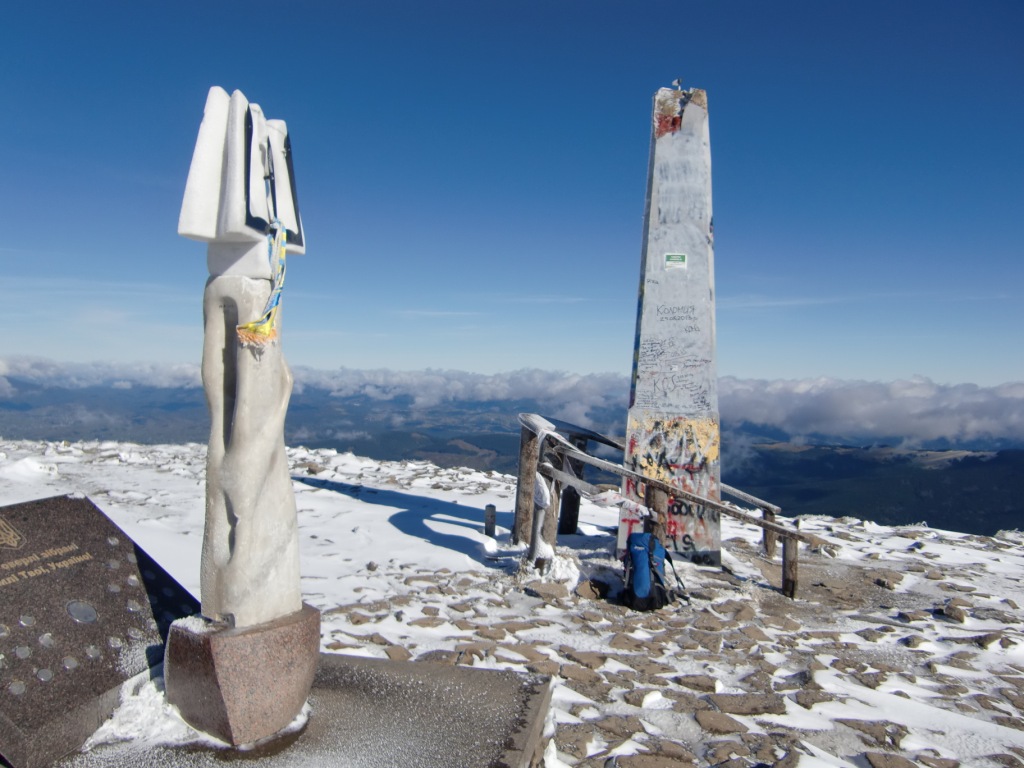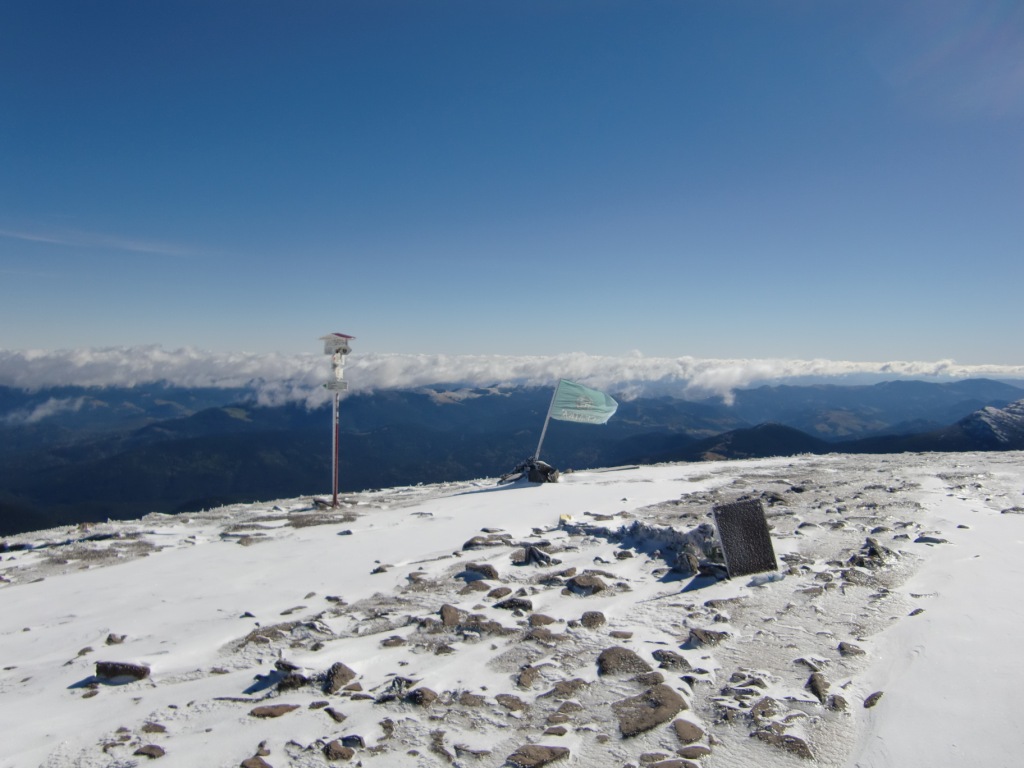 Formålet med turen var å besøke nasjonstoppene i Romania, Moldova og Ukraina, siden det kun er disse jeg nå manglet i Østeuropa. Dag 1: Seint kveldsfly Torp-Bucaresti, avhenting leiebil. Dag 2: Tidlig opp, kjørte vestover på fin vei og opp Transfagarasan, 3 timers kjøring, noe mer enn antatt. Startet å gå ca 7 km før toppen, men møtte snø ganske raskt. Det var bare å innse at å nå toppen av Moldoveanu på en dagstur langs en lang rute med luftige ryggtraverser var umulig. Med overnattingsutstyr, stegjern etc, kunne jeg våget meg videre, men slikt var ikke med. Jeg hadde regnet med at det fortsatt var sommer her oppe i september. Jeg gikk opp til redningshytta på drøye 2000 meter. Her begynte det allerede å bli isete, temperatur godt under 0 og 15-20 cm snø. Værmeldingen for neste dag var enda dårligere, og med de snømengdene som var i høyden, var det ikke håp om å komme opp med det første, selv om det skulle bli mildere og sol. Det ble retur til bilen, og videre kjøring opp til veiens høyeste punkt ved Balea-sjøen på 2200 moh, der det var full vinter, brøytet vei og strøbil 2-mannsbetjent i aksjon. Jeg kjørte ned på nordsiden av passet og endte opp i Brasov der jeg kjørte meg litt bort før jeg fant veien tilbake til Bucuresti. Her fikk jeg tak i en billett til nattoget til Moldova. Dag 3: Fikk tak i en sjåfør som tok meg til Balanesti. Herfra hyret sjåføren inn en vinbonde som kjørte oss alle opp til toppen. Det skal være kjørbar bilvei opp til toppen en plass, men tviler på at det var den ruta vi kom opp med, her var svært gjørmete, og egentlig var jeg glad jeg ikke insisterte på å gå de siste 2 kilometrene. På toppen var det frem med boka om eouropas nasjonstopper, og bonden var synlig fornøyd over å se bilde av sin topp i boka. Tilbake i Chisinau fikk jeg tak i en bussbillett til Ivano-Franovsk i Ukraina. Det ble en lang og slitsom tur med lite søvn. Dag 4: Jeg våknet av at konduktøren på bussen gikk frem og tilbake og at bussen ble stående lenge stille på et stort sted. Etterhvert viste det seg at vi allerede var fremme i Ivano-Frakovsk ca 05 om morgenen. Jeg kom meg trygt av bussen og takket konduktøren som fikk meg av på rett plass. Jeg hadde nok tid til å ta ut noen ukrainske hryvnia og finne bussen videre til Vorokta som gikk noen minutter senere. I Vorokta var det rett over på drosje som tok meg til foten av Goverla. det gikk greit oppover og en og en halv time senere, klokken 10:45 sto jeg på toppen. Skikkelig friskt på toppen, mye vind og kaldt. Litt isete var det også, men ikke verre enn at det føltes forholdsvis trygt å ta seg hit uten stegjern. Sjåføren var fornøyd over at jeg kom forholdsvis raskt ned, det ble minibuss tilbake til Ivano-Frankovsk, derfra tog til Lvov, der jeg fant nattoget til Krakow. Dag 5: Flyreise Krakow-OSL Jeg hadde planlagt å bruke mer tid i Romania, og også i de andre landene, men det var overraskende kjølig i området, så det ble til at jeg reiste forholdsvis raskt hjem, det var litt kaldt og stusselig der- synes jeg. Det hadde nok vært bedre å reise noen uker tidligere og unngå snø og kulde. Totalt 4 døgn på reise, med noen timer ventetid her og der. 1,5 time på fjelltur i Romania, 2,5 timer på tur i Ukraina, men ellers mange opplevelser rikere av ulike slag. Greie offentlige kommunikasjoner i området, selv om standarden kan være noe variabel. Litt slitsomt med de 3 siste nettene på reise, alle med grensepasseringer med pass og tollkontroll midt på natta.