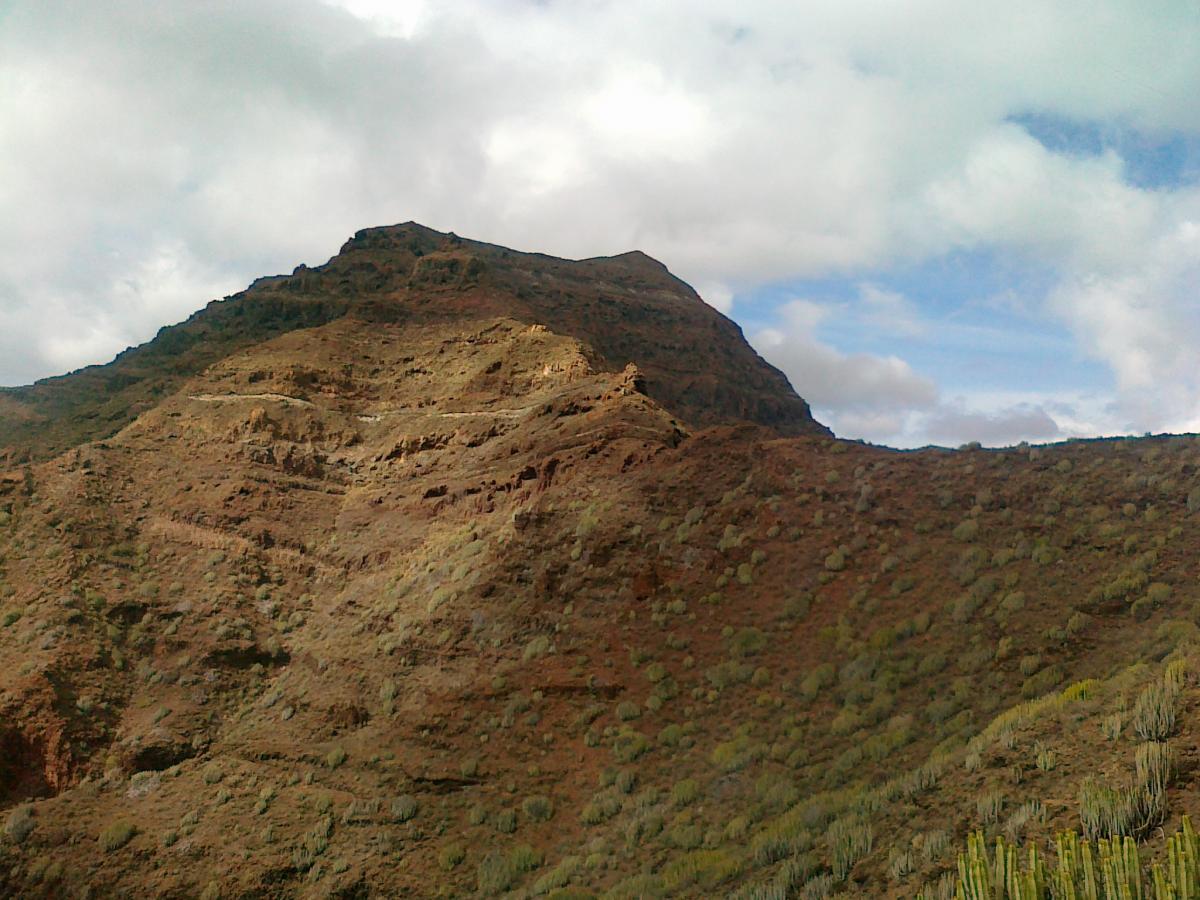 Stakk en tur vekk norsk høstmørke for å samle litt B og D-vitaminer. Jeg hadde sett meg ut en topp forrige gang jeg var her nede og forsøkte meg på denne. Det gikk akkurat. Terrenget er litt bratt, med endel langsgående hyller og loddrette vegger. Dette er både løsningen og problemet når man skal ta seg frem her. Med min innleide tsjekker kom jeg meg vest på Gran Canaria, og svingte av mot Tasartico. Etter ca 2,5 km langs en svingete vei er man i et skar der det går en grusvei mot høyre. Herfra gikk jeg bratt opp til et skar på ca 750 høydemeter. Fra toppen av skaret ser man mot toppen. Jeg fulgte ryggen videre opp mot høyre, og etterhvert under den første fortoppen gjennom en kaktus-skog. Etter å ha traversert kaktus-skogen, kom jeg meg opp på ryggen som leder mot toppen en liten stund, så litt ned igjen på sydsiden, deretter opp på ryggen nok en gang, der jeg rundet et lite nebb og fortsatte langs en smal hylle på nordsiden av ryggen og etterhvert bortetter østsiden av toppen. Etterhvert så det farbart ut oppover mot toppen, og jeg begynte på et parti med bratt klyving. rett under kanten av topp-platået var det nok et lite bratt parti som ikke var farbart, og jeg måtte tilbake et stykke sydover, rundet rundt på sydsiden av toppen og kom så opp på topp-platået som nærmest er en flat vidde. Flott utsikt i alle retninger, også mot skogkledde topper mere sentralt på øya. Her går skog-grensen på ca 1000 moh, skogen går fra ca 1000 meter og oppover. Fjellet er veldig hullete, delvis pga menneskelig aktivitet i gamle dager, da det ble tatt ut mineraler her. En tøff tur, ca 4 timer opp og ned. For andre som har tenkt å forsøke seg, vil jeg anbefale lange bukser og langermet skjorte. Jeg så litt rufsete ut etter nærkontakt med noen kaktuser og slikt underveis. Her treffer du garantert ikke naboen, noe som er en vanlig aktivitet når man reiser til chartermål. Tviler på at det er folk her særlig ofte. Det er ingen ordentlig sti, men jeg fulgte et lite tråkk her og der, og ikke minst er det ledevarder innimellom, men de er små og kan være vriene å se. Det ligger en beskrivelse på spansk med gps-spor her : http://es.wikiloc.com/wikiloc/view.do?id=1584335-
