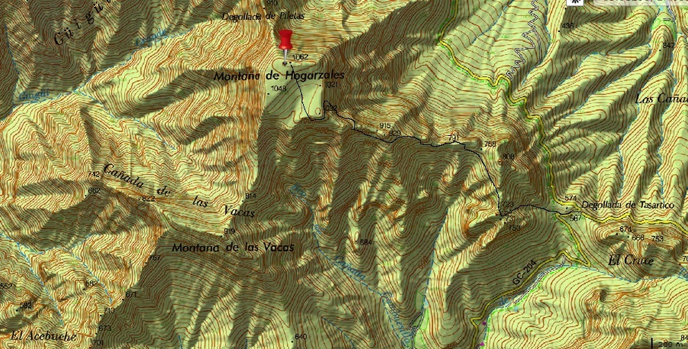 Eller denne i litt brattere terreng, tildels luftig og noe klyving/stifinning for å finne veien. http://www.fjellforum.no/topic/29846-monta%C3%B1a-de-hogarzales1062-m-lite-bes%C3%B8kt-klyvetopp-p%C3%A5-gran-canari/