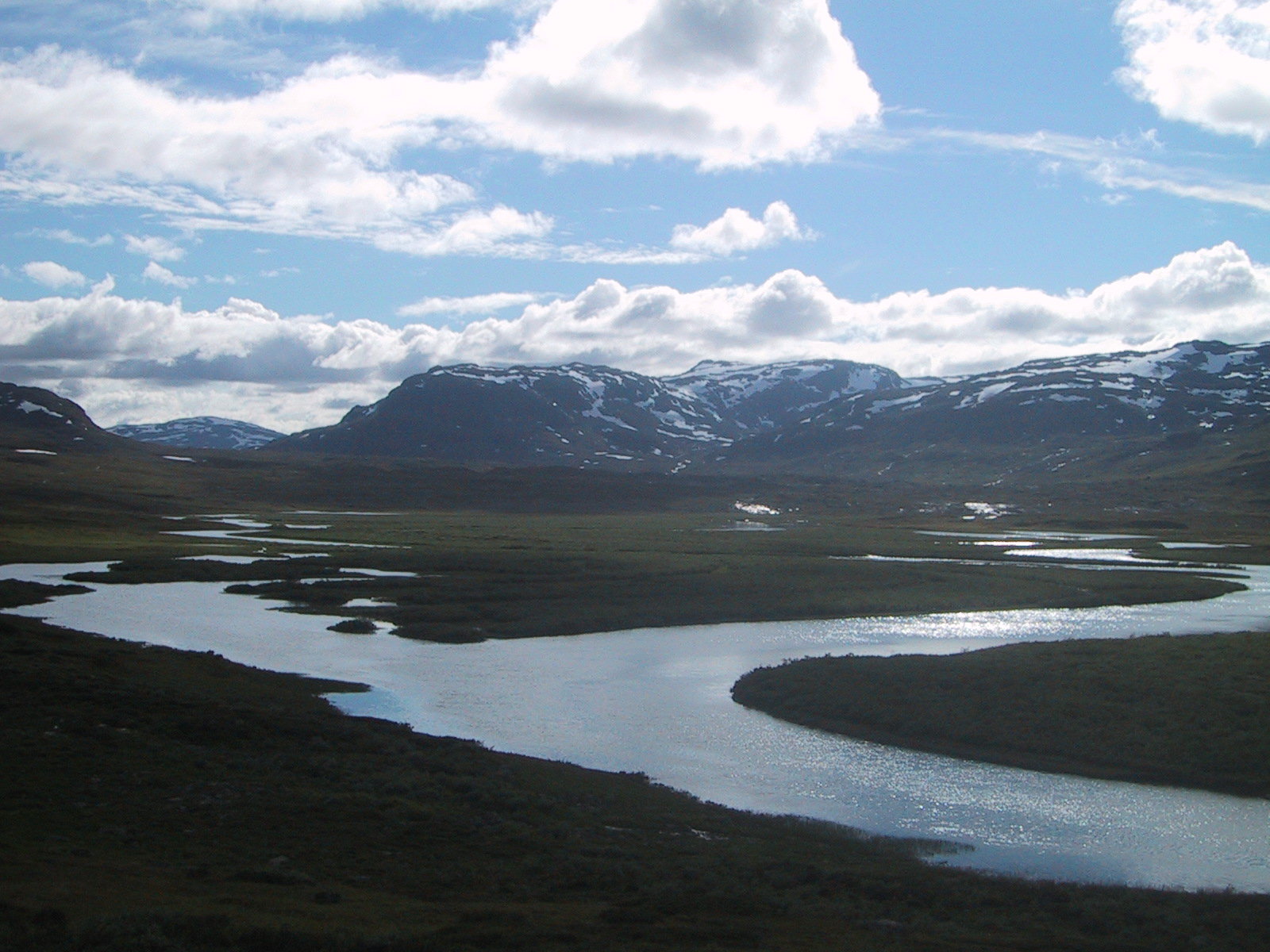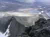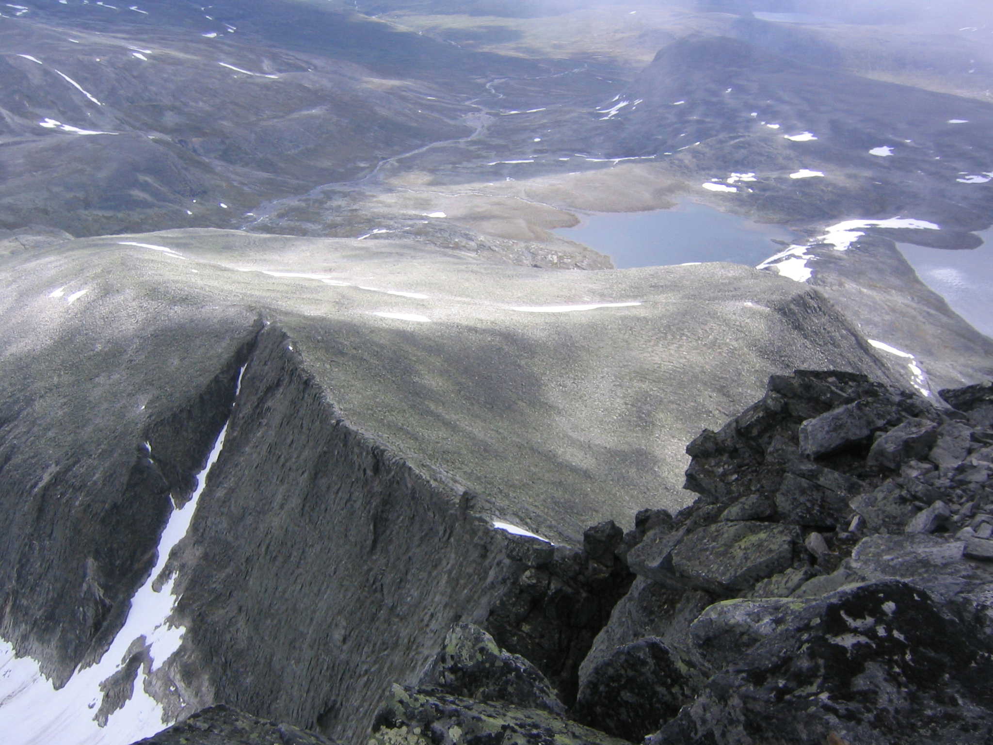 Ja skal ikke klage på været eaa. Det er kanskje litt sært å gå sånne lange turer alene, men jeg traff en svenske langt inne på fjellet der, i et bittelite telt. Virket som han ikke hadde sett folk på flere dager. Parkeringslappen i bilvinduet hans var 6 dager gammel. Ellers var det lite liv i fjellet, noen fugler og en liten halvtam reinsdyrflokk var alt jeg så. På flaten før toppen på over 2000 moh fant jeg noen små reinsdyrhorn. Her var ikke mye mat for dyra, lurer på hva de gjorde helt her oppe.