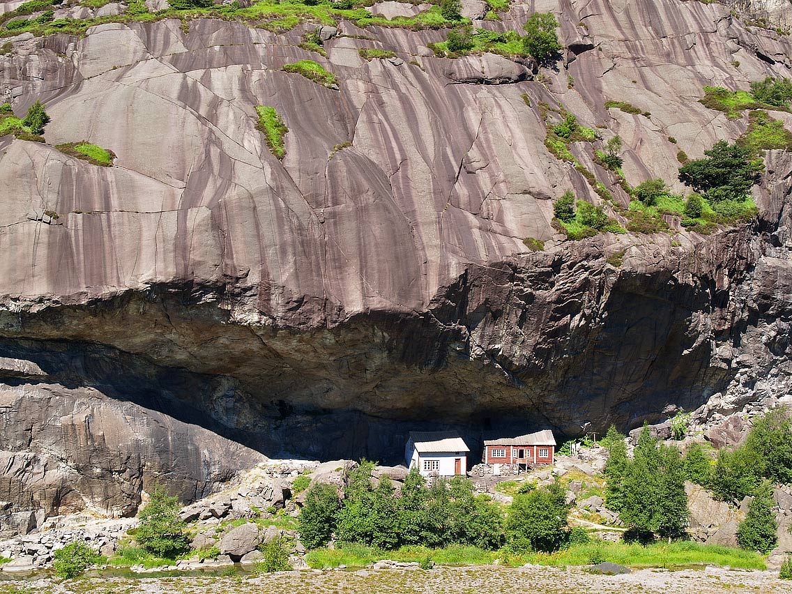 Det finnes mange slags husvær og krypinn i vårt mangslugne land, spredt fra fjære til fjell. Noen er stygge, noen er flotte, noen er sære, noen er kjære, noen er eldgamle, noen forfalne, noen malplasserte osv. osv... I sum utgjør de et mangfold som kan være ganske så severdig til tider. Tenkte vi kunne vise noen slike litt atypiske utgaver her? Begynner selv med plassen Helleren v/ Jøssingfjorden i Sokndal kommune, Rogaland. Falt litt for denne plasseringen! Ikke noe sjakktrekk å satse på takrenner og sisterne her, men man er da trygg for snøras ihvertfall! Såfremt man ikke går for langt ut fra trappa da...