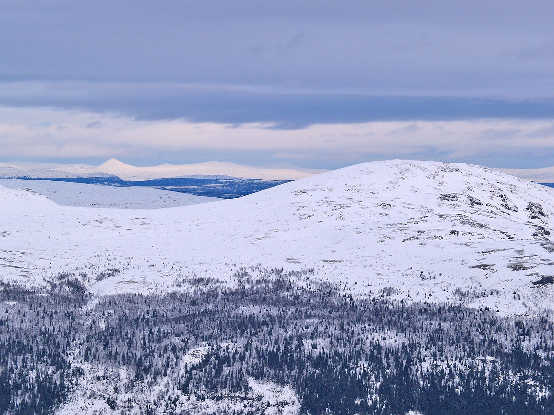 Hmmm - dette var vanskelig. Men siden intet skjer, så skyter jeg ut i det blå, mest for å få litt bevegelse rundt bildet: Kan det være i Trysil dette? Blekufjellet/991 til høyre, og Kampflåhøgda/1207 bakenfor? Sett fra et sted vest/nordvest for Osensjøen kanhende..?