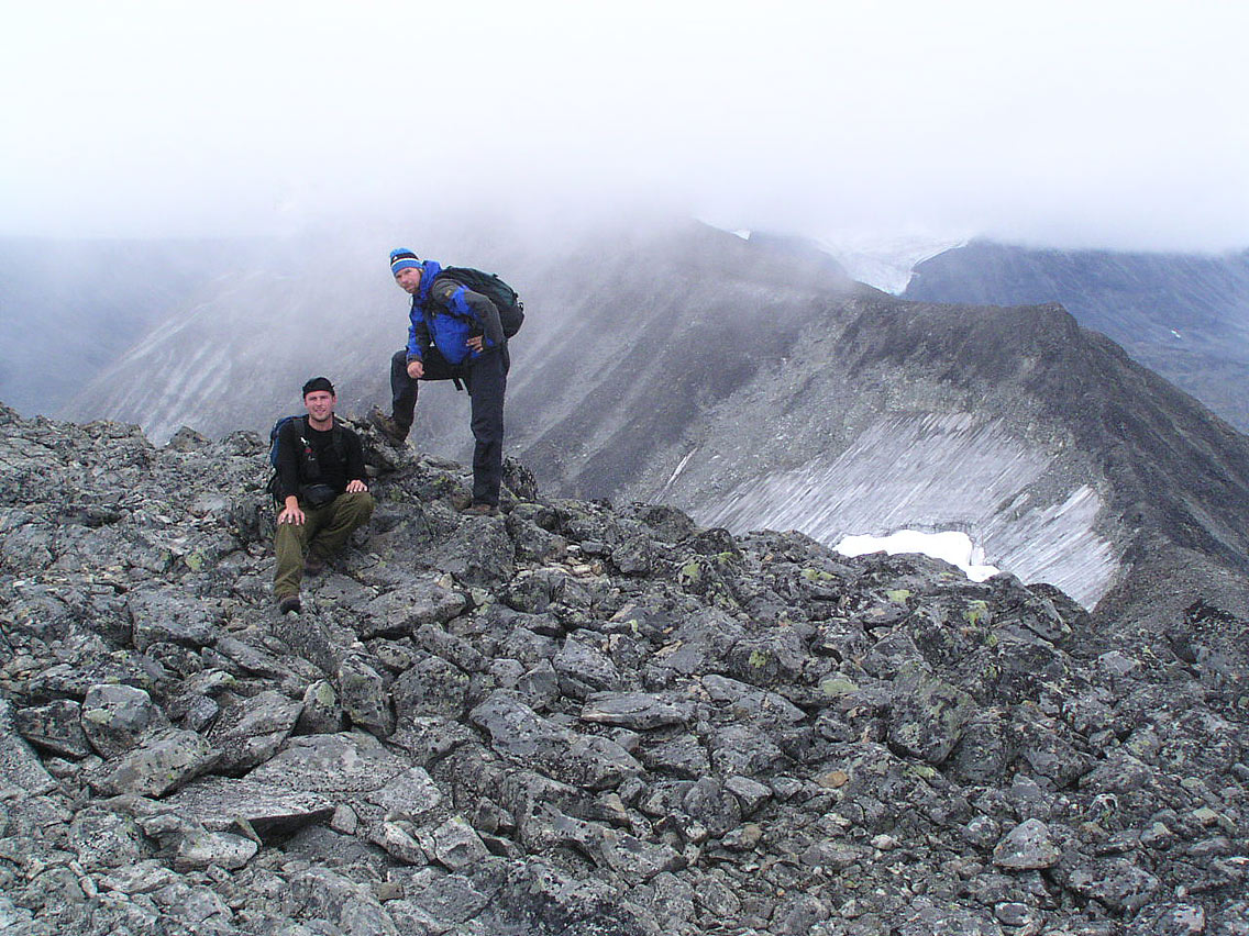 Godt å se at folk som også resier til lukrative topper utenlands også bryr seg med å gå til Veslfjelltind i tåke! Vitner om et stort fjellhjerte det! Og artig å treffes ja, etter tidl. kommunikasjon/kommentering via FF! Du får hilse broder'n når du ser ham.