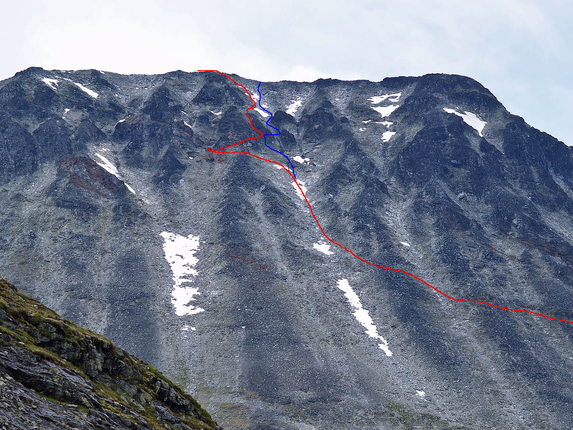 Var på Storen i grauttjukk tåke og plaskregn. Har derfor ingen visuelle referanser eller hukommelse av hvor vi egentlig gikk. Vi klatret Heftyes renne. Vedlegger et bilde av Storen tatt fra varden på Gjertvasstind. Vet ikke om Hjørnet og/eller Heftyes og Andrews rennene synes på bildet i det hele tatt, men hvis så er tilfelle, kunne noen prøve å tegne inn på bildet ruta fra Hjørnet til innsteget på Heftyes, samt renna til topps? Gjerne Andrews også, hvis mulig... Men mulig disse ligger mer S/V på fjellet, så de ikke synes her? (maksimer bildet i browser for max detaljering) På forhånd takk! - Snowman