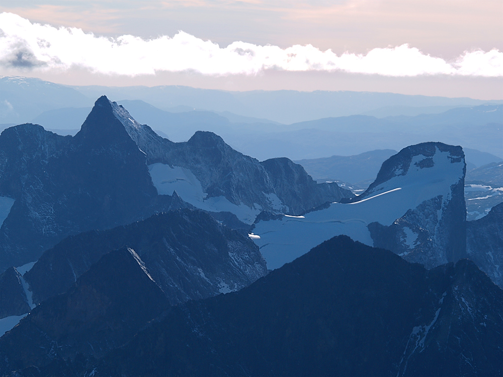Abstinens 1. oktober. Ute plasker et iskaldt regn skrått inn på vinduet, og fillete blygrå skyladder jager lavt nordover langsmed åssidene. Et og annet vissent løv fyker vilskent med vinden, for så å klisse seg fast et sted i det søkkvåte langgraset langs jordekantene. Nedunder meg sjoer Mjøsas kvitbrudne bølger tungt gjennom den halvskumme uværsdagen. Jeg er fjellsjuk. Rusler rastløs i ring rundt meg sjøl, kjededrikker kaffe... Fjellabstinensen tar overhånd, så jeg starter PC'n og begynner å bla meg gjennom bilder fra årets turer. Mimrer og minnes detaljer og stemninger som var. Øyeblikk som for evig er borte, men som jeg heldigvis har fanget bruddstykker av på bildebrikka. Regner med at jeg ikke er alene om å ha det slik til tider, kanskje spesielt nå, i ingenmannslandet mellom barmark og skiføre – Trøst Så for de det måtte gjelde, her kommer noen trøstens glimt fra blankere dager, gjennom året som som snart skal ebbe. Håper dere alle får mange slike øyeblikk framover, og at vi deler dem med hverandre, her, på dette akk så reddende forum! God tur - når det enn måtte bli! Høres!