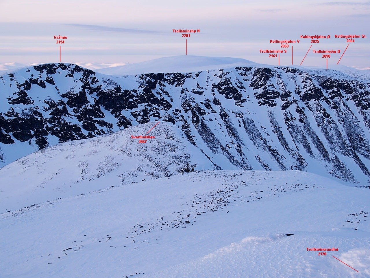 Kan ikke dy meg jeg heller nå, så hva med denne da? Inkl. toppen jeg står på, sees hele 9 2k-topper i bildet (se da bort fra den solbelyste horisonten bak til venstre)...