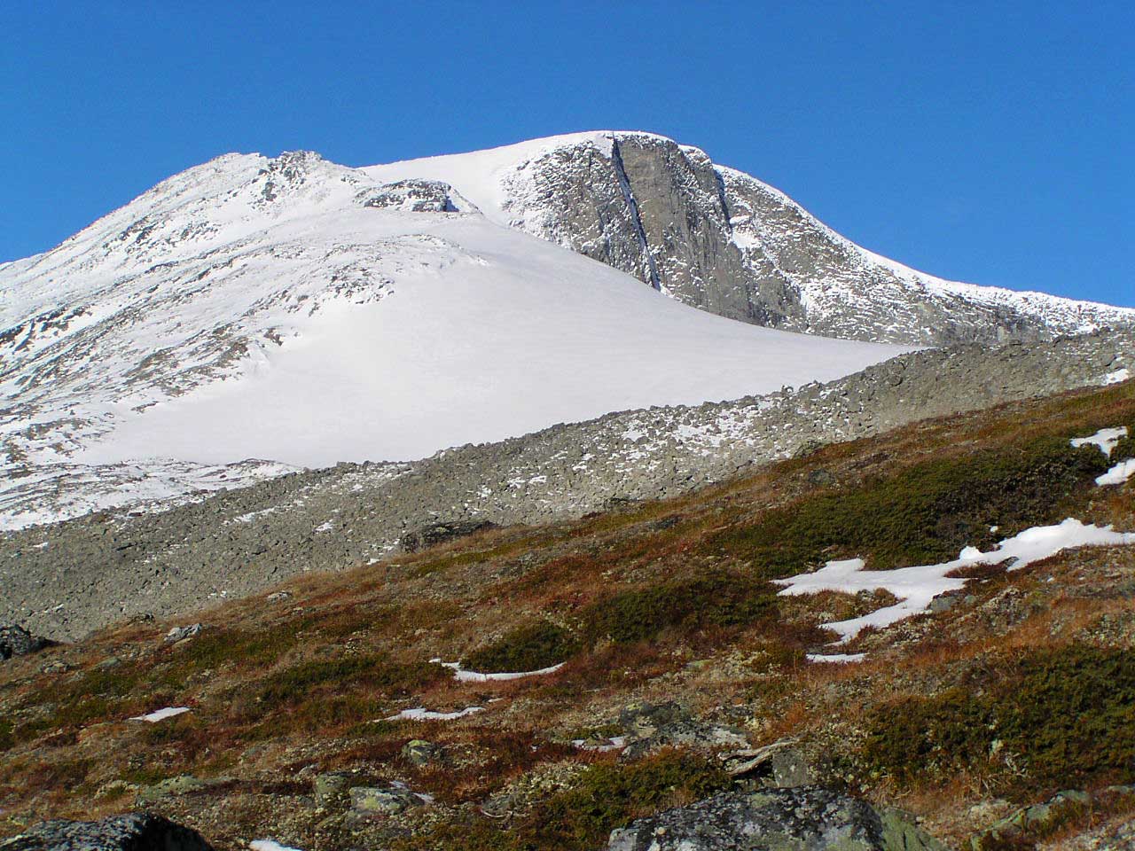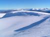 Klokka ringte kl. 0200 (gjesp!). Dro hjemmefra kl. 0230, med for sikkerhets skyld både ski- og fjellstøvler i bagasjen. Ankom Netosætre etter 3,5 t kjøretur, kl. 0605, mens det fortsatt var stapp mørkt over rimete setervanger. En mager månesigd sto krumbøyd over svarte berg, kun et svakt sjo av åa hvisket lavmælt i dalen, ellers dødsens stilt. Spiste litt, på med skistøvler, bandt skia på sekken. Stadig for mørkt, så jeg duppet av litt i bilen, og våknet i gryet kl. 0715. Gikk til øverste bebyggelsen i Netosæterlia, og videre rett opp. Ikke gjør som meg! Lia er bratt, vassjuk, og tett bevokst med skrevshøy viju, bresk og kjerringris, et rent helvete å gå i! I tillegg går vegetasjonen ekstra høyt opp her. Gå heller helt vest på vangen, like inntil Geitåe, og følg krøttersti opp rabbene derfra. Satte mine første fotspor i flekksnøen ved ca. 1400 moh, men ordentlig snøføre ble det ikke før ved nærmere 1600 moh. Jeg gikk over morenekanten innunder Heksetbrean, og videre opp "fastlandet" langs ryggen vest for breen. Ryggen er bratt og stenete, så skia kom ikke på før 200 "lengdemeter" før Hestbrepigg Ø-1/2105 (også kalt Høgset eller Heksete). Været var helblankt og nydelig, kun en liten vestatrekk som ikke fordret hverken lue eller votter. Ei solfylt pause i sørhellinga ga reneste påskestemningen, og med det utsynet - er det rart man trives! Oppe på høgda lå drøye halvmeteren med fast fin snø. Tørt og fint skiføre. Gikk følgelig på ski videre vestover til Hestbrepigg Ø-2/2132. Utsikten herfra er formidabel. Man ser "alt", og særlig blir "Jotunheimen skyline" lang og fantastisk. Og Ø-1 ser totalt forskjellig ut fra baksiden - jfr. bilder. Må innrømme jeg svatt en gang deroppe. Et særs markert trostetrekk pågikk i finværet, store flokker på hundrevis av fugl dro stadig forbi, etterhvert både over og under meg. Jeg sto i vinterstilla på skavlekanten himmelhøgt over Heimste-brean og myste i kamerasøkeren, da brått en rødvingetrost kom som ei børsekule over kanten, og rett i fleisen på meg. Den gjorde skikkelig anskrik, og svatt nok enda mer enn meg. Heimste-breane nordover lå som nystrøkne puddermjuke laken, glatte, silkehvite og lytefrie - fristende ja! Turen gikk så videre fra Ø-2 til Hestbrepigg M-1/2160, langs stupkanten mot breene i nord. Langs hele strekket har man uforstyrret panorama i alle himmelretninger, her er du virkelig på Norges tak! Returen gikk ned den bratte bretunga i henget rett sør for M-1, og ned i dalen (Geitdalen ?) mellom Hestbrepiggene og Steinhøfjellet/1566. I dalen lå flott skiføre, og jeg gikk tilbake ned mot Geitåe til ca. 1500 moh før jeg måtte ta av skia. Fulgte derfra åa til dals. En nydelig høstdag var brukt til endes, ca. 20 km / 1550 hm. Tilbake ved bilen etter 10 t, og så atter en gang 3,5 timers kjøretur hjem...