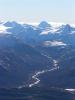 En liten relatert digresjon: Det finnes også lavtliggende punkter med stor utsikt i Norge. Står du på Skreikampen 698 moh i Østre Toten (den du ser fra toget/E6 tvers over Mjøsa nord for Minnesund) og skuer rett øst, så vil faktisk ikke siktlinjen stoppe i noe høyere landskap før Uralfjella! Alt østenfor gjennom Sverige, over Bottenvika, gjennom Baltikum og videre inn i Russland er vesentlig lavere lende. Dette blir omtrent like langt som til Italia! Så her er det kun dis og jordkrumming som stopper utsynet... Et annet og hypotetisk eksempel: Tenk at du står på Nord-Norges høyeste punkt i Lyngsalpene - Jiehkkevarré 1834 moh. Jeg har ikke vært der, men jeg antar at man kan se havet/kystlinja derfra. Legger man WGS 84 sin jordradius til grunn (root mean square radius) på 6371016,75 m, så kan følgende tenkte utsikt defineres: Siktlinjen fra toppen og ned langs kystlinja vil til slutt tangere havnivået, og nå dette 152,88 km unna. Tenk deg så at videre langs siktlinja bakenfor tangeringspunktet ligger en kystnær topp på 1000 moh. Da vil avstanden fra tangeringspunktet til denne toppen bli ytterligere 112,89 km. Total siktlinje blir da tilnærmet 265,8 km! Fullt mulig...?