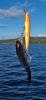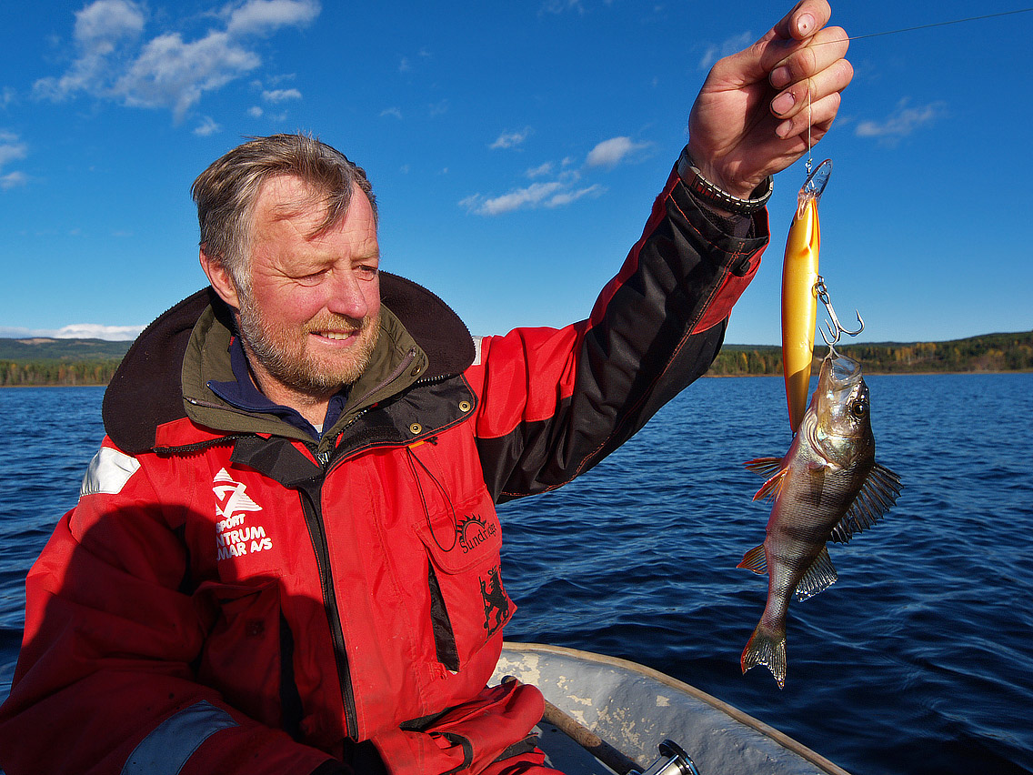 Gjedda er jo kjent for å ta diger byttefisk. Stor gjedde (> 5 kg) tar eksempelvis byttefisk i størrelse 1/4 til 1/3 av sin egen vekt, dvs. at en 10 kilos gjedde tar annen fisk som veier 2,5-3,3 kg. Det tilsier fisk i 60-65 cm klassen, så man skal ikke være redd for å bruke store agn/sluker/wobblere her! Gjedda er jo også kannibal samtidig - jfr. bildeeksempel her: http://www.fishing-adventures.net/big%20pike.jpg Byttet på bildet er omtrent av ovennevnte størrelse. Men også annen fisk kan være glupsk. Jeg vet at bla. i Tyrifjorden kan man ta ørret helt ned i 2,5-3 kilos størrelse under dregging med taklet sik på 600 gr! En slik sik er da 35-38 cm lang, mens ørreten som tar kun er 58-61 cm. Vi har tatt ørret på 325 gr på Rapala Supershad 14 cm (SSR14), en voluminøs og bredsidet wobbler som virker mye større enn lengden alene skulle tilsi: http://www.rapala.com/products/luresdetail.cfm?modelName=super_shad_rap&freshorsalt=Fresh Fisken er da så liten at den akkurat klarer å gape høgt nok til å "tré seg innpå" trippelkrokene. Vi har også tatt ørret på fattige 290 gr. på Rapala Original Float 18 cm (F18): http://www.rapala.com/products/luresdetail.cfm?modelName=original_floater&freshorsalt=Both Vedlegger videre noen bilder fra sist onsdag (10.10.07) som viser glupsk abbor. Bildene viser abbor i kvartkilosklassen som tar 18 cm magnumwobblere (FMAG18). Den minste fisken her er faktisk bare jamnlang med wobbleren. Vi har også tatt gjedde på disse som er like små som wobblerne selv, men slike sniper er da så slanke at de faktisk virker mindre enn byttet! Noen andre som har slike utrerte eksempler på glupsk fisk..?