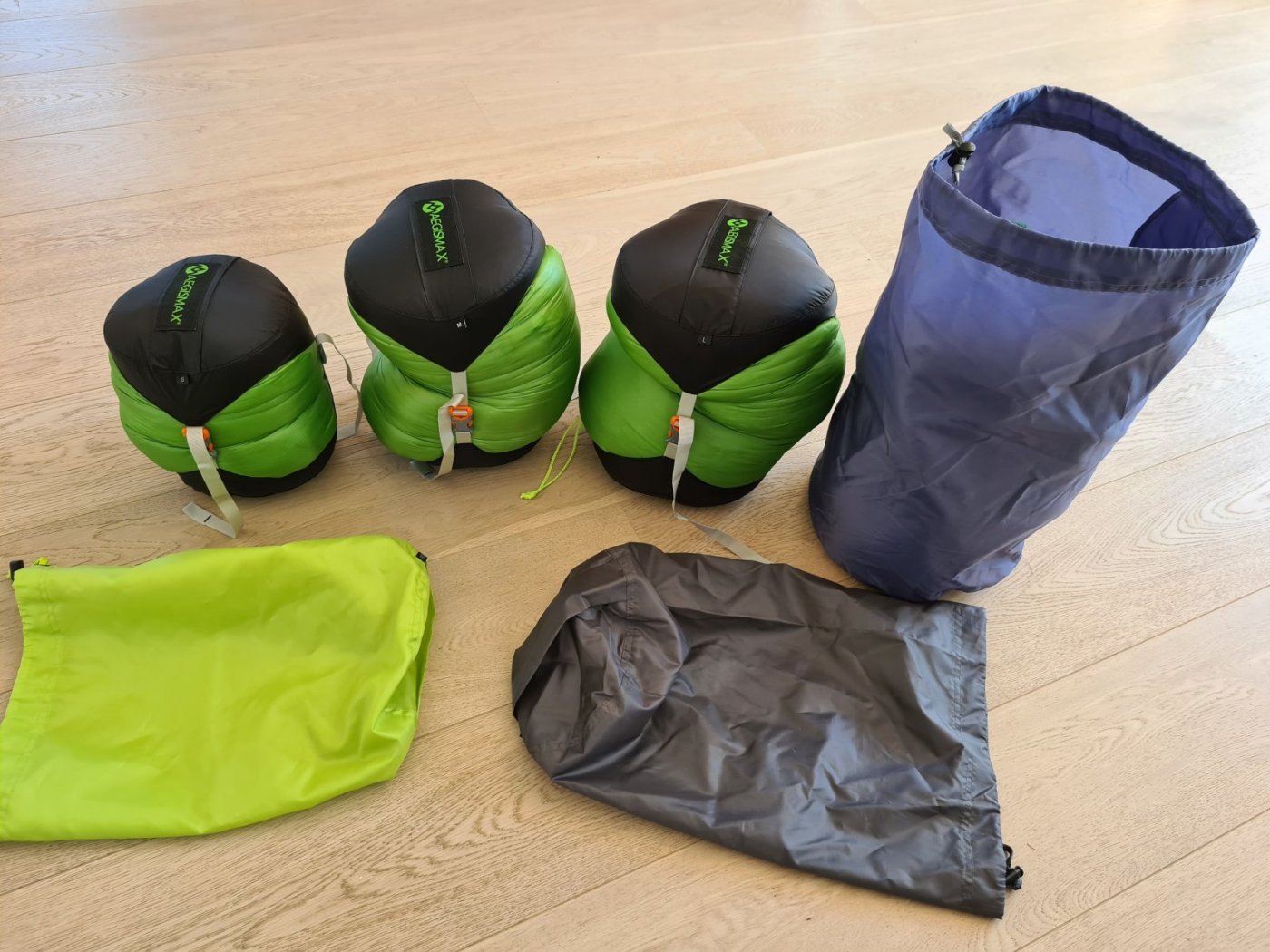 Kan bli vanskelig å finne noe i nærheten til den prisen, så jeg regner med å beholde den. Jeg har sovet i Never Winter i 4 grader (komfortemp) i bare boxeren og da var jeg varm og god. Mulig det blir annerledes i minusgrader, så det må testes. De to største svakhetene er kragen og kompresjonstrekket. Hvor stort problem kragen vet jeg ennå ikke. For kompresjonstrekket, har jeg bestilt nye trekk fra AliExpress. Blir spennende å se hvordan de er: https://www.aliexpress.com/item/4000428790987.html?spm=a2g0o.store_home.slider_828491201.0 Orginaltrekkene: Never Winter: 12 Liter (diameter = 20 cm, høyde 39 cm) Never Summer: 17 Liter (diameter = 22 cm, høyde 44 cm) Ouray: 21 Liter (diameter = 25 cm, høyde 47 cm)