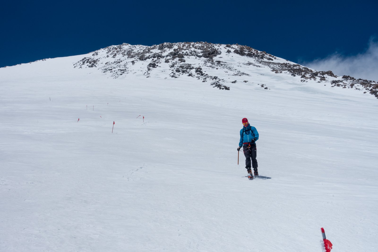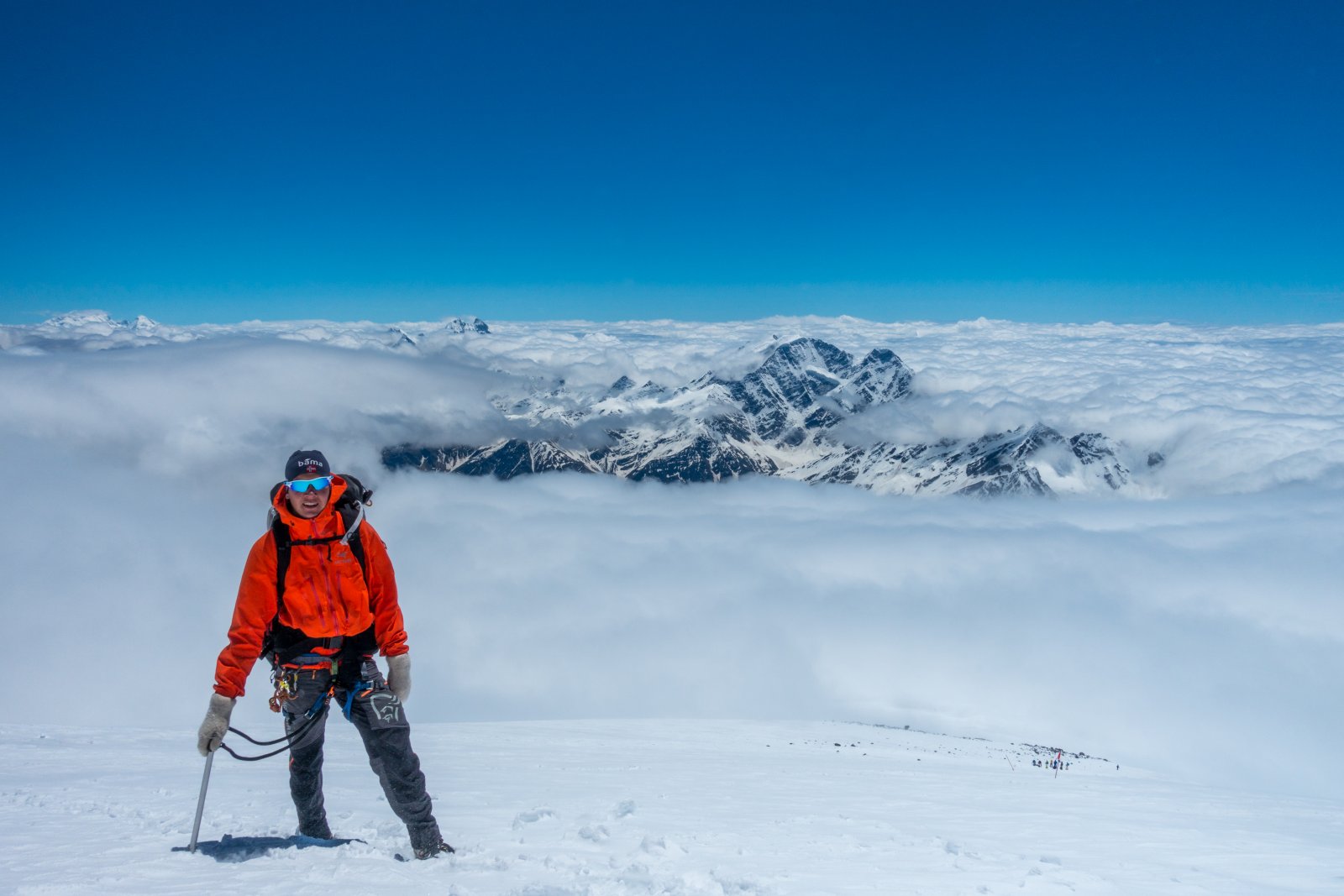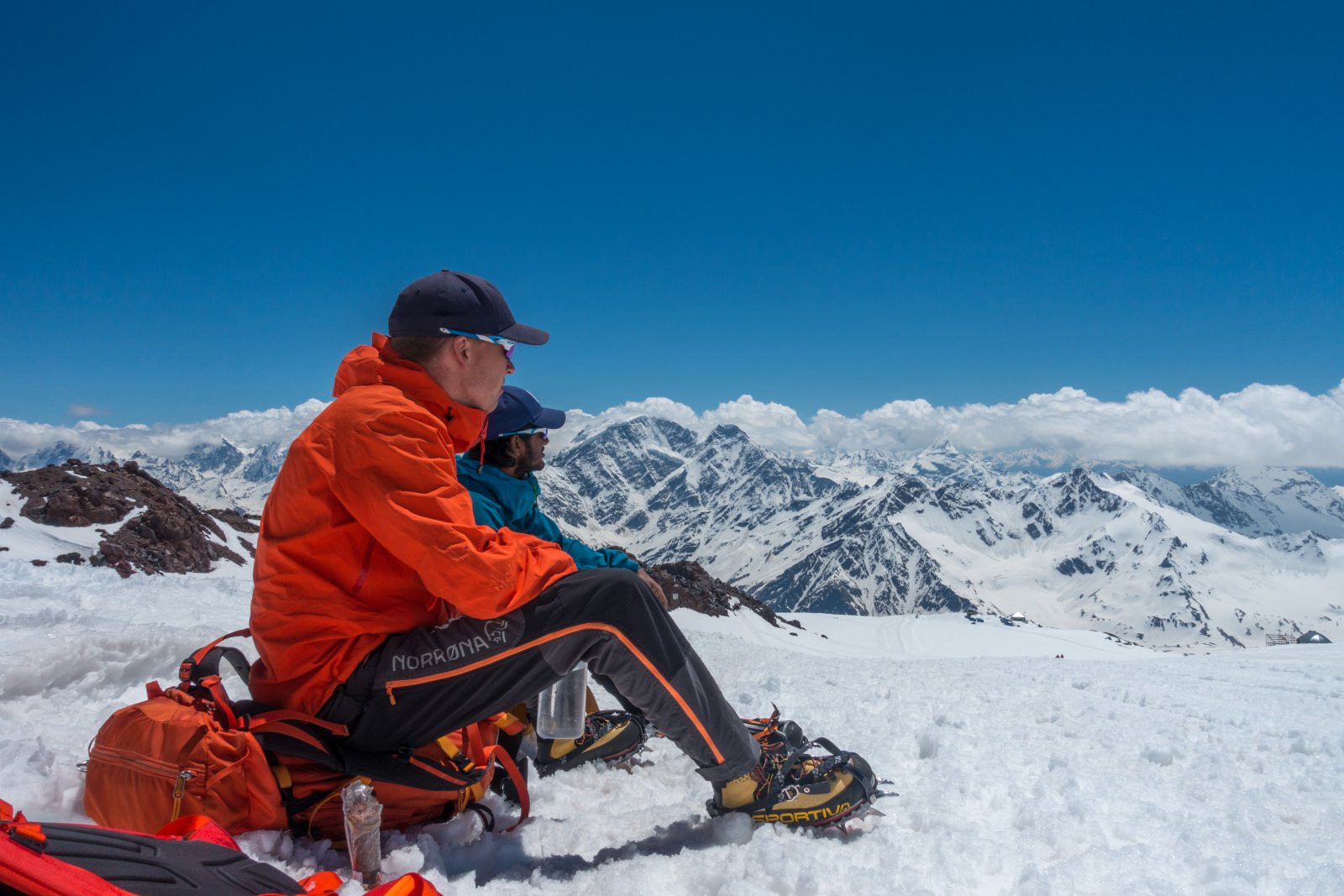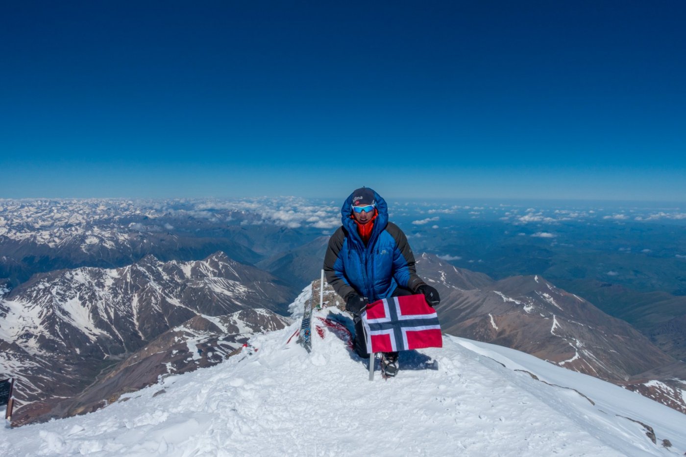 Etter å ha skaffet egen hjemmeside har det blitt en del turrapporter fra de større ekspedisjonene jeg har gjennomført. Tenkte det kunne være interessant å dele en liten rapport fra Elbrus i sommer. Vil du lese mer om andre store turer legger jeg ved en link for de som ønsker det: Sk Adventures Helt siden Kilimanjaro var unnagjort, har Elbrus vært et stort mål for meg. Det har derimot vært et problem der tid og turdeltakere ikke har strukket til de to siste årene. Derfor hadde jeg virkelig noe uoppgjort med dette fjellet. Da jeg fikk beskjed om at jeg hadde litt tid før jeg skulle ut å seile i sommer, måtte jeg bare få klemt inn denne turen. Jeg var så heldig å få med meg Lars Digerud fra start, og dermed hadde vi en god kjerne i bunn. Etter å ha blitt skjemt bort på Kili var trangen etter å gjennomføre turen mest mulig på egenhånd stor. Valget falt derfor på en såkalt «light package» der kun hotell og transport var inkludert. Planen var å ta med seg telt og alt annet utstyr vi trengte, for så å jobbe oss gradvis oppover fjellet. To skritt frem og ett tilbake. Det var klart at vi kom til å få en tyngre og mer utfordrende tur sammenlignet med de fleste andre, men samtidig setter jeg friheten av å gjøre alt på skikkelig vis høyt. Etter å ha forsøkt å sette sammen en ekspedisjon til Elbrus de to siste årene, hadde jeg god kunnskap om turen. Disse faktorene, kombinert med mest tur og ekspedisjonserfaring, gjorde det naturlig at jeg tok jobben som ekspedisjonsleder på denne turen. Vi fikk også med oss Kevin Almeida, som hadde vært med meg på Island sommeren før. Etter en lang reise ankom vi omsider hotellet vårt litt etter kl. 04.00. Vi ble enige om å komme i gang med akklimatiseringen samme dagen, for å optimere sjansene våre for å nå toppen. De to første dagene gikk med til akklimatiseringsturer på to topper rundt hotellet. Allerede her fikk vi kommet oss over 3000meter begge dagene, noe som var ny rekord for Kevin og Lars. Alle kroppene svarte godt på tilvenningen til høyden, så vi fortsatte å pushe høydemeter de påfølgende dagene. På dag tre skulle vi endelig få prøve oss en tur oppover selve fjellet, for Kevin ble det en hard påkjenning når vi rundet 4200meter, og som jeg skrev i dagboken den dagen: «På 4200meter måtte Kevin gi seg, fornøyd med dagens bragd da brekninger meldte sin ankomst». Det ble derfor besluttet at Kevin skulle si seg fornøyd med dette, mens Lars og jeg derimot var i godt form og fortsatte et push opp til 4500meter. Kroppene våre føltes overraskende fine på denne høyden, dette kombinert med fantastisk vær og solskinn, gjorde at det var lite å utsette på denne akklimatiseringsdagen. Det var nå tid for å starte siste fase av reisen mot toppen, der vi skulle flytte opp på fjellet i telt. Sekkene ble pakket kvelden før, og stemningen var til å ta og føle på. Vi gikk av gondolen på 3700meter, der skydekket allerede lå noen hundre meter høyere oppe. Sekkene var veid inn til ca. 35kilo, så det var mye utstyr som skulle fraktes oppover. Her var det en fot foran den andre, som skulle få oss opp. Planen var å slå camp så høyt man kunne komme, og samtidig ha litt le av fjellet som stikker opp langs traseen. På 4000meter begynte Kevin igjen å føle litt på høyden med et lett trykk i hodet. Valget falt derfor på at jeg skulle gå opp til teltplassen, for så å returnere ned for å hente sekken hans. Jeg fikk pushet teltplass så høyt opp det var fornuftig å gå, rett på enden av fjellryggen som stikker opp til 4370 meters høyde. Været tok seg merkbart opp da vi skulle slå opp teltet, og vi fikk bra med både snø og føyke her, men teltet kom til slutt opp, og lemuren ble bygget så høy vi orket. «Dette arbeidet var svært krevende, og hodepinen meldte sin tilstedeværelse i takt med arbeidsbelastningen. Det er noe spesielt med disse høydene der de vanlige arbeidsoppgavene koster veldig mye mer.» Det er rart hvordan man kan legge seg dårlig, men neste dag er alt sammen bra igjen. Litt etter kl. 06.00 var det ut av posen, da solsteiken varmet opp teltet til det ut holdige. Dagens mål var å komme en tur opp over 4700meter, men etter en noen minutter gåing måtte jeg sende Kevin tilbake til teltet for heller å hvile seg. Denne dagen var været skiftende, og først da vi passerte 4600meter kom vi over skydekket. Dette var en fantastisk følelse, og noe av det fineste jeg vet med høye fjell. Med godt driv oppover ble dagens mål fort justert til 5000 meter. «Dette skulle vise seg å bli en tung affære fra 4900 til 5000 meter, her kostet hver meter mye. Jeg husket fra Kilimanjaro at det var noe spesielt med dette 5000 metersmerket.» Vi kom omsider opp til merket, og kunne nyte en velfortjent hvil her. Neste dag tok jeg det med ro, for å lade opp overskudd til toppstøtet. Kevin og Lars tok derimot en akklimatiseringstur til 4700 meter, dette var dag 6 og Kevin slet fortsatt med å tilvenne seg høyden oppover fra 4000 meter. Det var nå tid for å forberede alt til toppstøtet, som vi hadde fire dager til rådighet for å fullføre, og man kan dermed si at tiden var på vår side. På det tidspunktet blåste det nok nærmere 15m/s, og snøføyken rundt telte var ekstrem. Jeg fikk ringt hjem for å få den nyeste oppdateringen på været, men prognosene var ikke mye oppløftende. Vinden skulle øke med 2,5 m/s i løpet av natten og morgningen, og det blåste klart mer enn værvarslet meldte for øyeblikket. Det mest bekymringsverdige var været som var meldt de påfølgende dagene, der det var snakk om vind opp mot 30 m/s i kastene, og det var klart vi hadde kun en mulig toppdag med dette værvinduet. Det å legge seg med visshet om at kl 02.00 er det opp for å starte et toppstøt, når hele teltet rister kraftig i vinden, er nok ikke noe drømmescenario. Som jeg selv skrev denne kvelden: «Det er meldt 15 m/s på toppen i morgen og dette blir en jobb helt opp mot limi