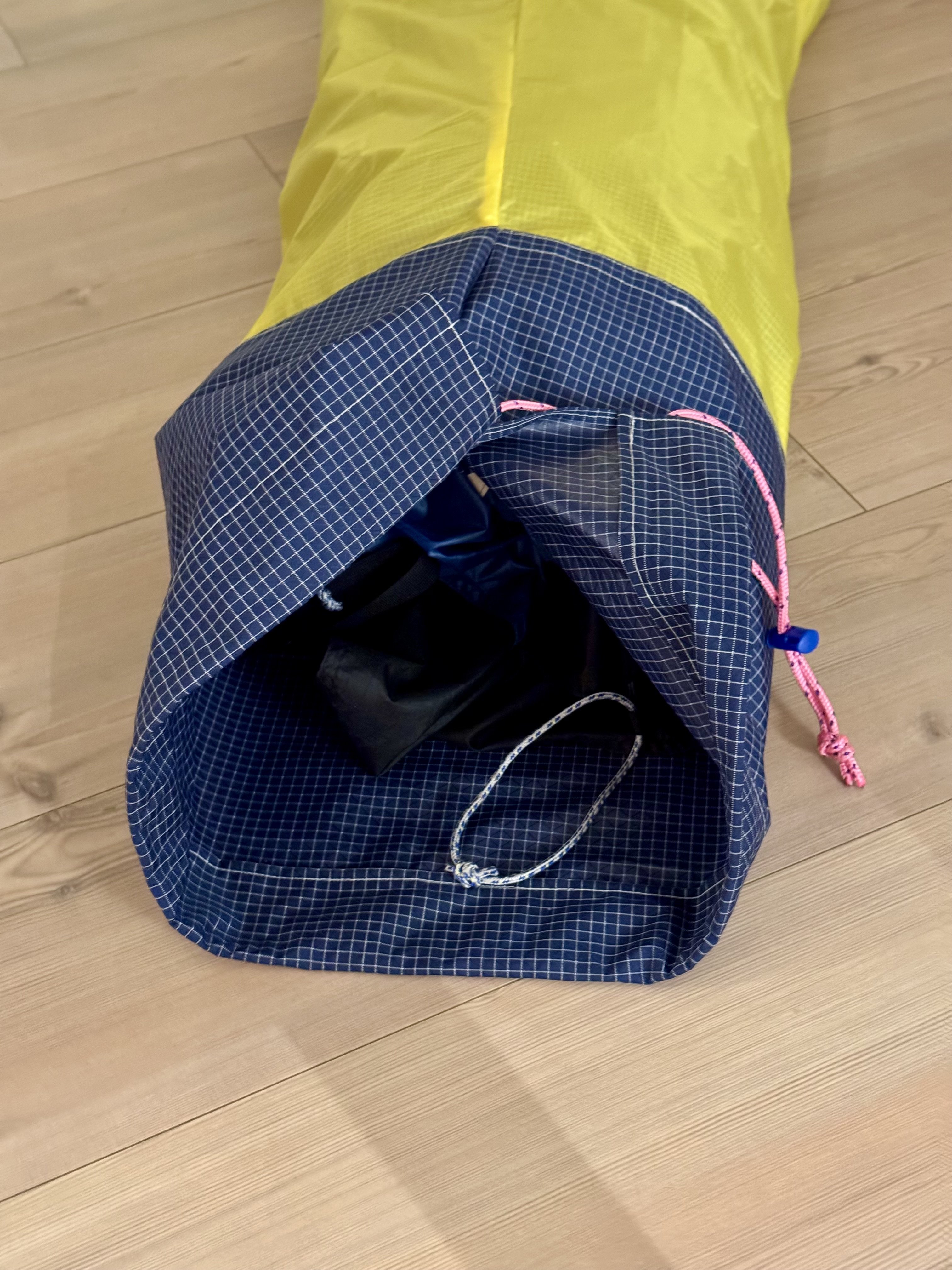 Takk takk, det er vel lett å se at jeg hentet mye inspirasjon fra de gode løsningene på din pose Det gule er 40D nylon herfra: https://aliexpress.com/item/1005002571681634.html Det blå er 210D nylon herfra: https://aliexpress.com/item/1005005068880449.html