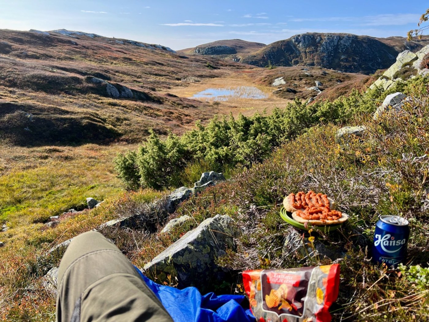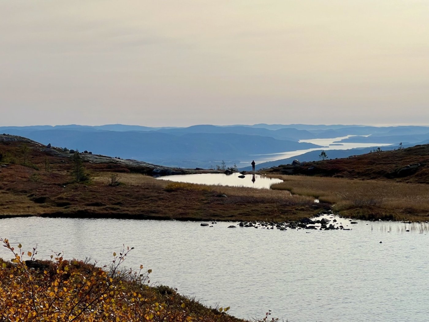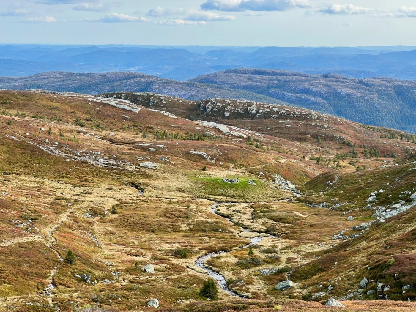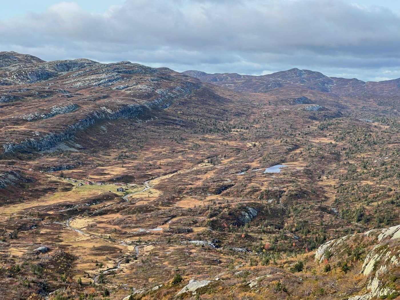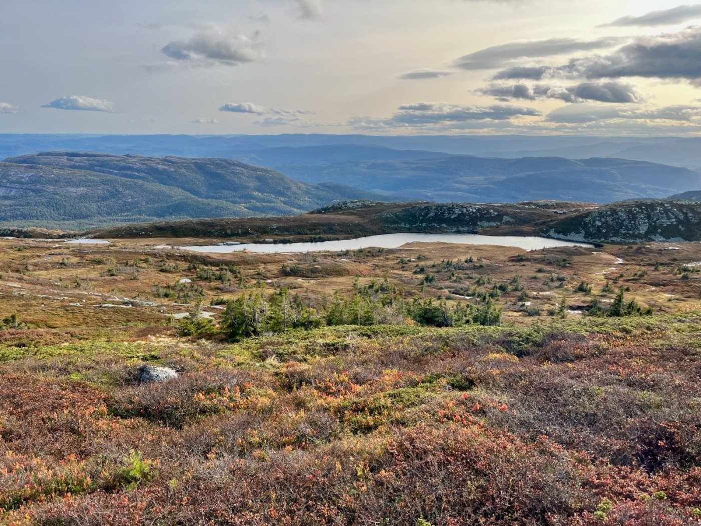 Tre flotte dager i Lifjell, inspirert av fine turrapporter fra @Kristian V., @Martin HJ, @Bjellesau m.fl. Fredag: Jønnbu - Skåråfjellholmen - Øysteinnatten - Dyrdalsfjellet (telt) https://www.strava.com/activities/9944661841 Fint vær da jeg startet ved Jønnbu, men tåken tetnet til og det kom noen regnskyll og litt vind. Dessverre veldig lite utsikt fra Øysteinnatten. Da jeg kom mot Dyrdalen begynte det å mørkne. Ville gjerne slå leir på nord-/østsiden av Dyrdalsfjellet da det var meldt mye vind fra sørvest. Ikke så mange flate partier som ikke var myr, men jeg fant en helt grei plass å ligge på. Fikk dog ikke spent opp teltet særlig bra. Lørdag: Hollane - Mjeltetjønn - Jøronnuten - Langetjønn (telt) https://www.strava.com/activities/9950855239 Blå himmel, men bra med vind. Fant en liten krok i le og med morgensolen i ansiktet hvor jeg kunne lage frokost. Målte 18 m/s i kastene, lå vel på 10-12 i snitt tenker jeg. Utrolig fin utsikt mange steder, særlig vestover mot Hollane da jeg kom ned fra Dyrdalsfjellet. Ble en god pause i solveggen i le på seteren. Flott å gå mot Jøronnatten hvor det var vidstrakt utsikt og mye vind. Nedover gikk jeg litt på måfå før jeg på denne siden fant et tips om en bra teltplass ved Langetjønn. Det viste seg å stemme bra, fin plass i le for vestavinden, selv om mesteparten var ganske vått. Noen få tørre kvadratmetre som akkurat holdt til mitt Ringstind 2 Nydelig kveld, men merket gjennom natten at det blåste heftig, blant annet mye susing fra noen bjørkekratt som stod eksponert til. Søndag: Valjuvsnatten - Valjuvet - Holmedammen - Kloppesteintjønn - Oksladalen og tilbake til Jønnbu https://www.strava.com/activities/9955922794 Da jeg våknet i 8-tiden var det nesten vindstille og kun litt morgendis. Lang frokost i solveggen. Utløpet av Langetjønn mot øst var utrolig pittoreskt, så det ble en del forskjellige motiver derfra. Siden jeg måtte tilbake til Oslo ikke alt for sent, la jeg ruta til Valjuvet via Valjuvnatten før jeg tok rakeste ved mot Jønnbu ned Oksladalen. Vinden løyet helt og det lille som var av dis forsvant, og det ble en fantastisk dag med flotte formasjoner og farger overalt. Såvidt jeg klarte å holde meg fra et bad i en av de vakre fossekulpene oppover Valjuvet!