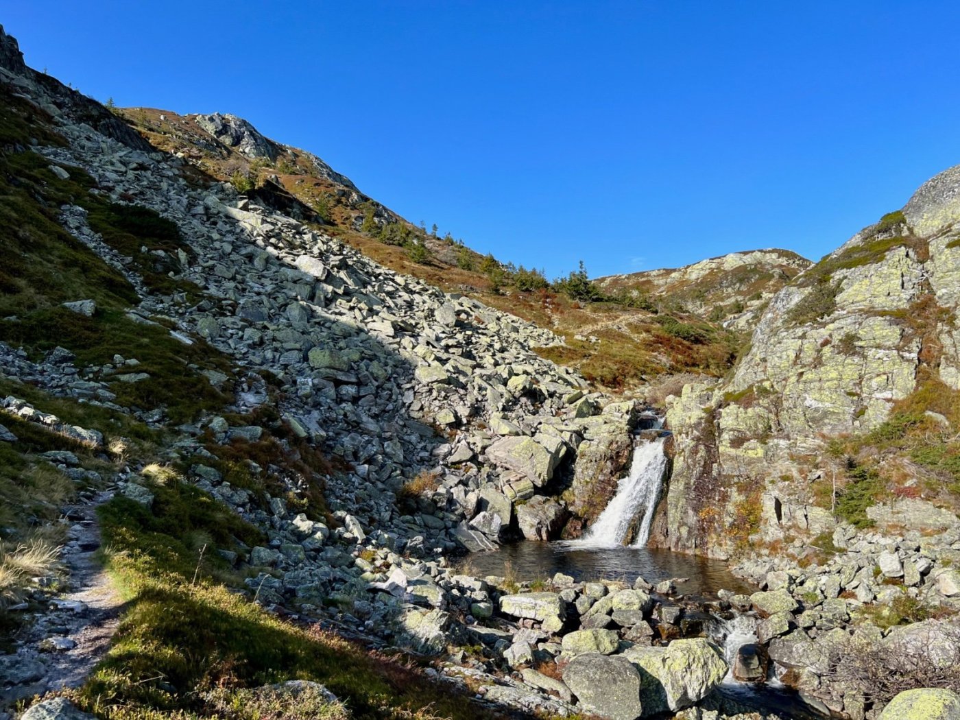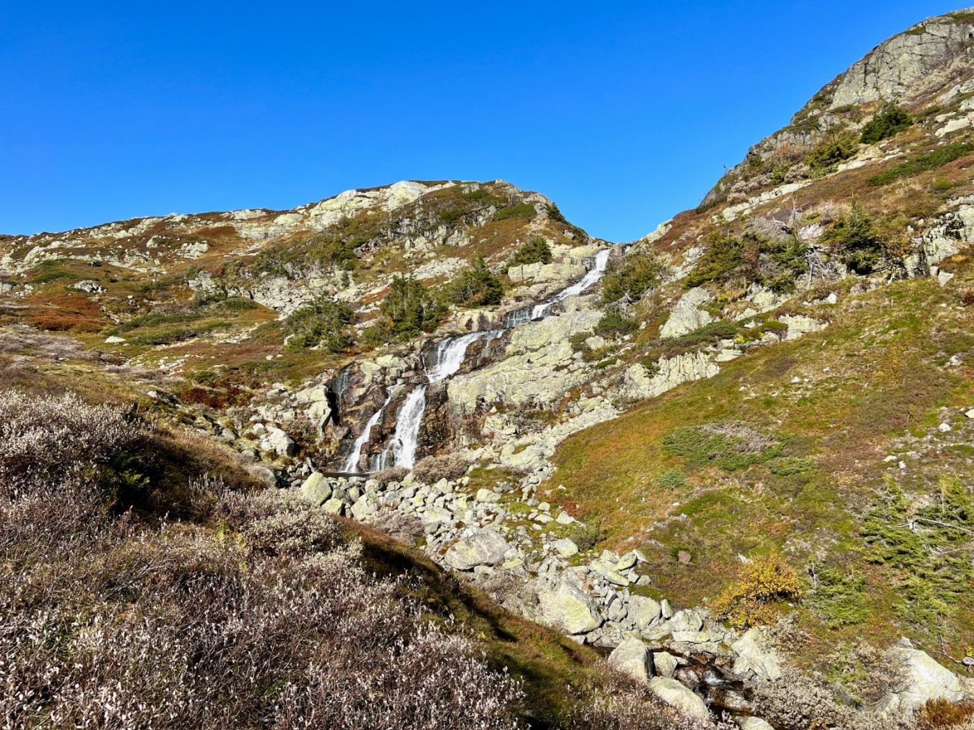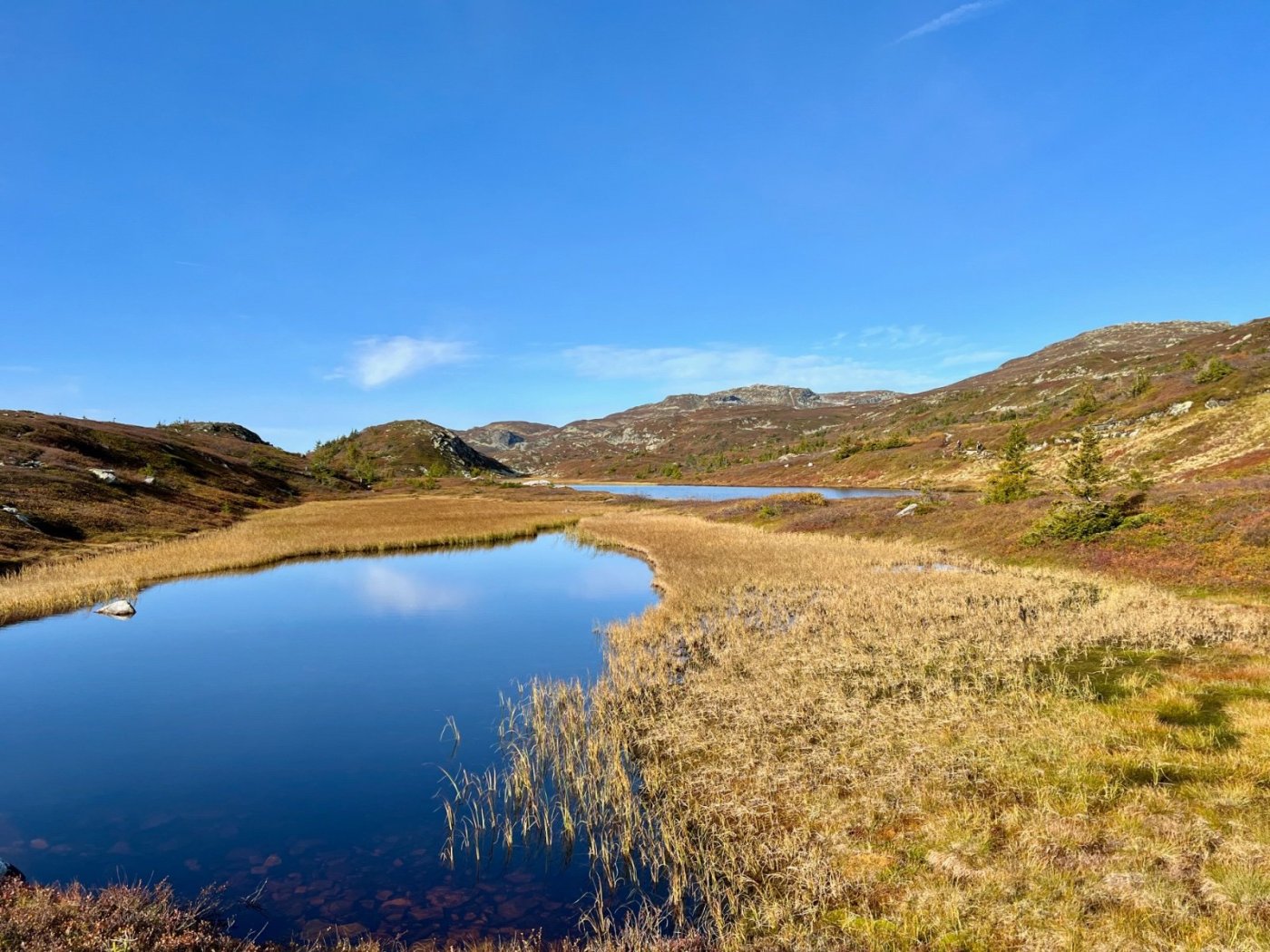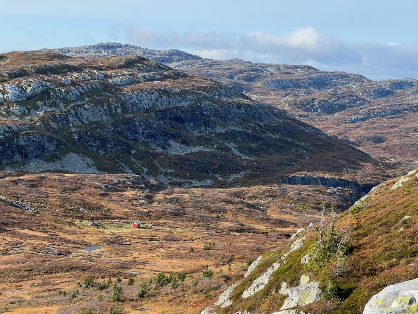 Tre flotte dager i Lifjell, inspirert av fine turrapporter fra @Kristian V., @Martin HJ, @Bjellesau m.fl. Fredag: Jønnbu - Skåråfjellholmen - Øysteinnatten - Dyrdalsfjellet (telt) https://www.strava.com/activities/9944661841 Fint vær da jeg startet ved Jønnbu, men tåken tetnet til og det kom noen regnskyll og litt vind. Dessverre veldig lite utsikt fra Øysteinnatten. Da jeg kom mot Dyrdalen begynte det å mørkne. Ville gjerne slå leir på nord-/østsiden av Dyrdalsfjellet da det var meldt mye vind fra sørvest. Ikke så mange flate partier som ikke var myr, men jeg fant en helt grei plass å ligge på. Fikk dog ikke spent opp teltet særlig bra. Lørdag: Hollane - Mjeltetjønn - Jøronnuten - Langetjønn (telt) https://www.strava.com/activities/9950855239 Blå himmel, men bra med vind. Fant en liten krok i le og med morgensolen i ansiktet hvor jeg kunne lage frokost. Målte 18 m/s i kastene, lå vel på 10-12 i snitt tenker jeg. Utrolig fin utsikt mange steder, særlig vestover mot Hollane da jeg kom ned fra Dyrdalsfjellet. Ble en god pause i solveggen i le på seteren. Flott å gå mot Jøronnatten hvor det var vidstrakt utsikt og mye vind. Nedover gikk jeg litt på måfå før jeg på denne siden fant et tips om en bra teltplass ved Langetjønn. Det viste seg å stemme bra, fin plass i le for vestavinden, selv om mesteparten var ganske vått. Noen få tørre kvadratmetre som akkurat holdt til mitt Ringstind 2 Nydelig kveld, men merket gjennom natten at det blåste heftig, blant annet mye susing fra noen bjørkekratt som stod eksponert til. Søndag: Valjuvsnatten - Valjuvet - Holmedammen - Kloppesteintjønn - Oksladalen og tilbake til Jønnbu https://www.strava.com/activities/9955922794 Da jeg våknet i 8-tiden var det nesten vindstille og kun litt morgendis. Lang frokost i solveggen. Utløpet av Langetjønn mot øst var utrolig pittoreskt, så det ble en del forskjellige motiver derfra. Siden jeg måtte tilbake til Oslo ikke alt for sent, la jeg ruta til Valjuvet via Valjuvnatten før jeg tok rakeste ved mot Jønnbu ned Oksladalen. Vinden løyet helt og det lille som var av dis forsvant, og det ble en fantastisk dag med flotte formasjoner og farger overalt. Såvidt jeg klarte å holde meg fra et bad i en av de vakre fossekulpene oppover Valjuvet!