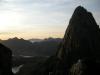 Tja, graden er kanskje en tøff 4-er? Utfordringen på fjell som dette er ofte totaliteten, lang anmarsj, været, og klatringen til på toppen av det hele. I tillegg vet man ikke hva man går til, ettersom ruta antakelig aldri er gått før. Det må dog sies at det i mange tilfeller er litt av sjarmen med det hele. Har forsøkt å lage en kort beskrivelse av ruta: Følger i hovedtrekk et godt synlig dieder til høyre for eggen (midt i bildet). Litt mosegrodd og noe sig men ellers fint og fast fjell. Cruxet, en godt beplantet sprekk litt til høyre for diedret, avslutter 1. taulengde. På widescreen-balkongen er det god plass til å lufte tåfisen. Derfra kan man beskue Fisketindan, Møysalen og andre omkringliggende herligheter. 2. taulengde følger to sprekksystemer til høyre i diedret, fint og fast fjell, men litt rotete og løst opp mot kanten. Fin standplass og gode muligheter for rigging av rappell. Med to 60 meters tau når man helt ned dersom man følger fallinja nederst. Lett scrambling uten behov for tau herfra.